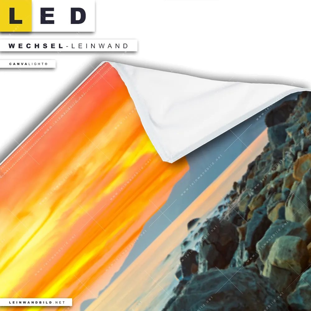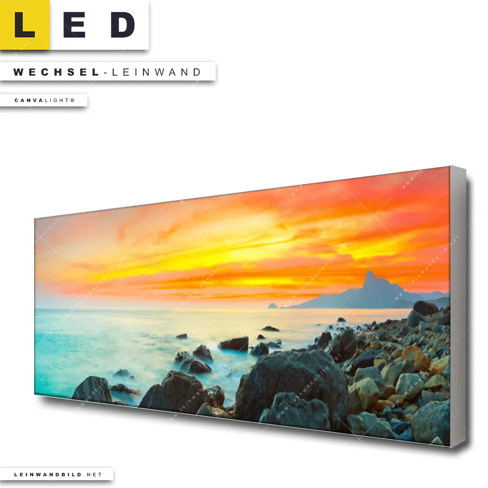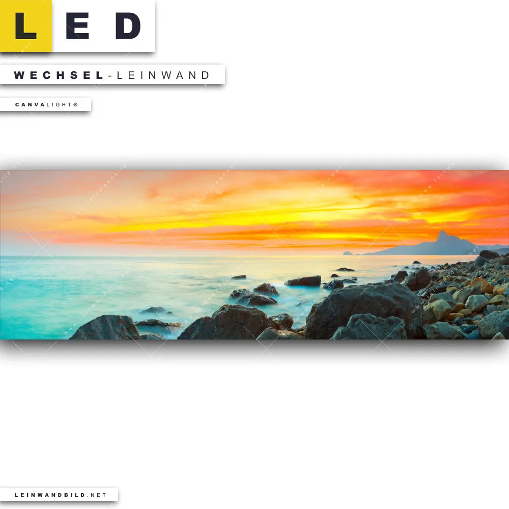 Du bist auf der Suche nach einer Landschaften, Strand - Meer Wechsel-Leinwand für Dein LED-Leinwandbild im Panorama-Format? Begriffe wie Küste, Felsen, Sonnenuntergang - Sonnenaufgang, Ostsee - Nordsee, Urlaub - Reisen, Deutschland haben Dich auf der Suche nach Deiner Ersatz-Leinwand für dein extra breites LED Wandbild mit wechselbarer Leinwand inspiriert? Farben wie Orange, Türkis, Rot dürfen auf Deinem neuen Wechselmotiv für Dein XXL Leinwand-LED-Bild nicht fehlen und Leinwände im Modern Art Stil für Leuchtbilder passen perfekt zu Deinem Einrichtungsstil?