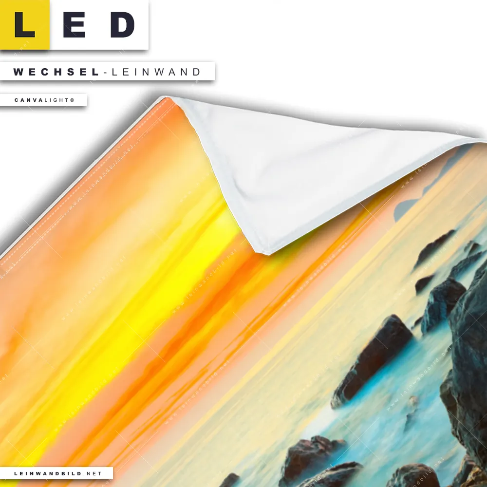 Du bist auf der Suche nach einer Landschaften, Strand - Meer Wechsel-Leinwand für Dein LED-Leinwandbild im Querformat? Begriffe wie Küste, Felsen, Sonnenuntergang - Sonnenaufgang, Ostsee - Nordsee, Urlaub - Reisen, Deutschland haben Dich auf der Suche nach Deiner Ersatz-Leinwand für dein breites LED Wandbild mit wechselbarer Leinwand inspiriert? Farben wie Orange, Türkis, Rot dürfen auf Deinem neuen Wechselmotiv für Dein XXL Leinwand-LED-Bild nicht fehlen und Leinwände im Modern Art Stil für Leuchtbilder passen perfekt zu Deinem Einrichtungsstil?