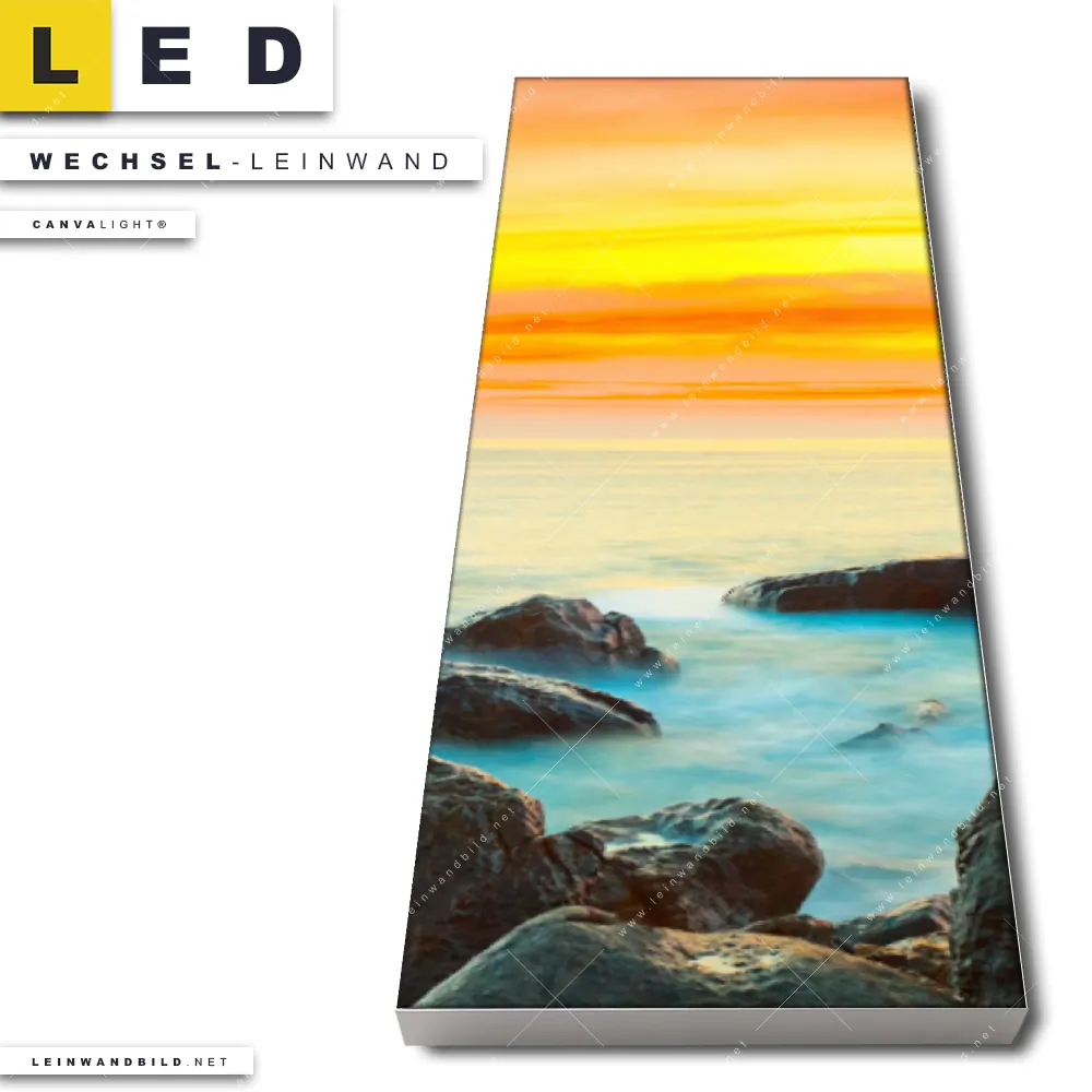 LED Wechsel-Leinwand Canvalight® TEX | Sonnenuntergang über dem Meer | Schmal