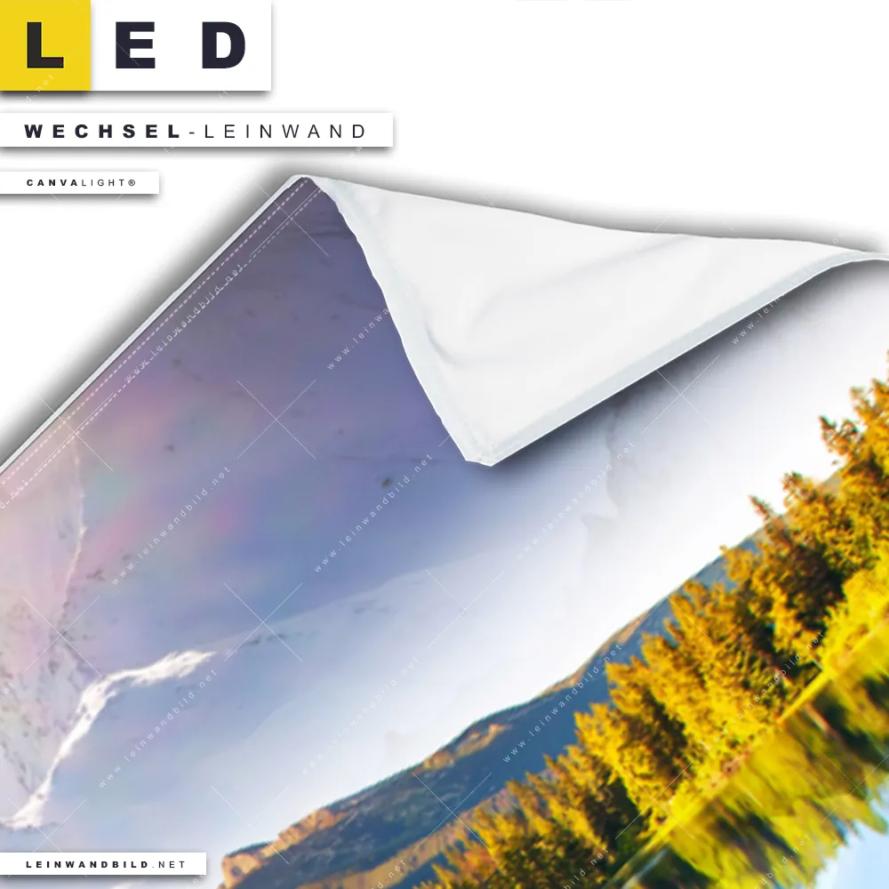 Du konfigurierst Deine individuelle LED Wechsel-Leinwand Canvalight® TEX | Sonniger Tag am Bergsee | Panorama und wir produzieren sie NEU für Dich. Unsere Landschaften Austausch-Fotoleinwände für Canvalight® LED Bilder sind KEINE Lagerware. Du bist Dir unsicher, welches Motiv oder Format das richtige für dein individuelles LED Wechselmotiv auf Leinwand ist, dann helfen wir dir gerne weiter und beraten dich!