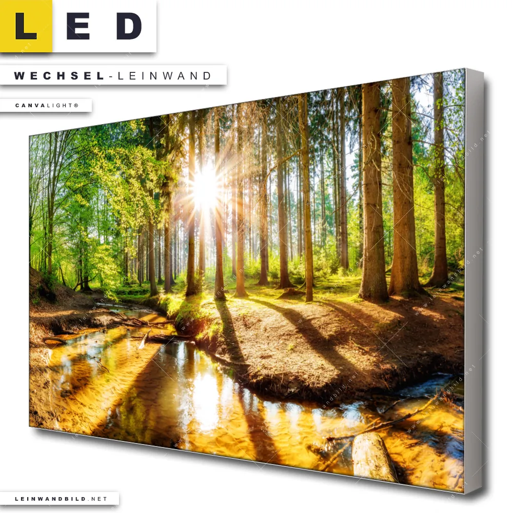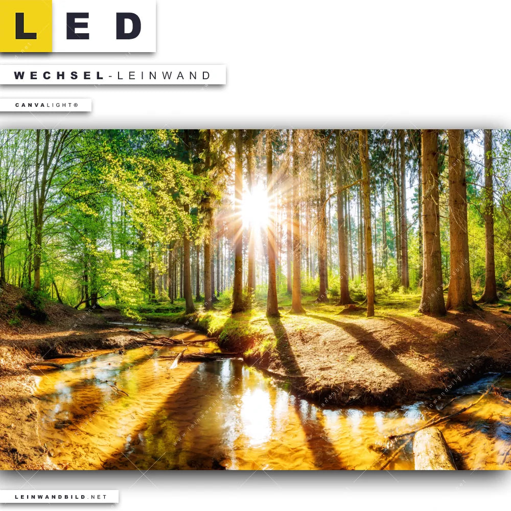 Du bist auf der Suche nach einer Landschaften, Wald - Bäume Wechsel-Leinwand für Dein LED-Leinwandbild im Querformat? Begriffe wie Wald, Landschaft, Baum, Bäume, Natur, Sonne, Sonnenstrahlen, Licht, Fluss haben Dich auf der Suche nach Deiner Ersatz-Leinwand für dein breites LED Wandbild mit wechselbarer Leinwand inspiriert? Farben wie Grün, Braun, Hellgrün, Beige dürfen auf Deinem neuen Wechselmotiv für Dein XXL Leinwand-LED-Bild nicht fehlen und Leinwände im Natürlich - Realistisch Stil für Leuchtbilder passen perfekt zu Deinem Einrichtungsstil?
