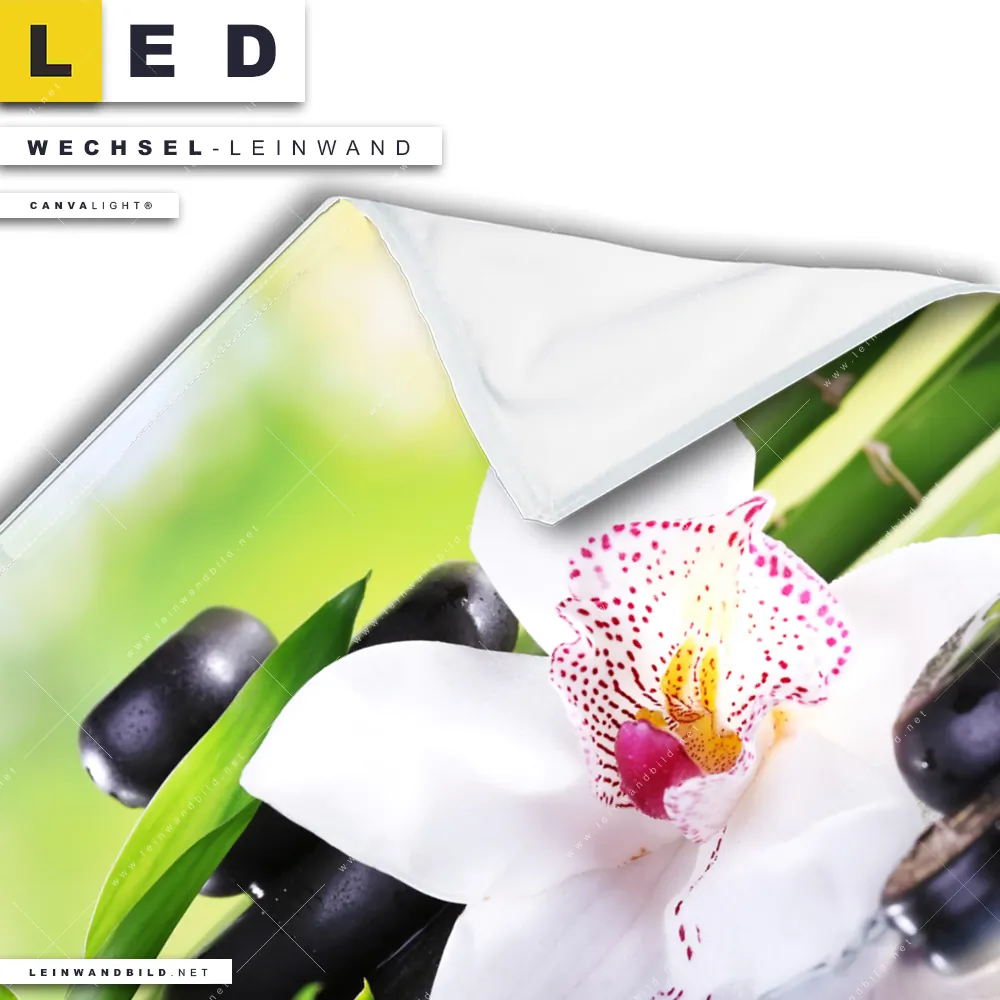 Du konfigurierst Deine individuelle LED Wechsel-Leinwand Canvalight® TEX | Spa Wellness Steine | Quadrat und wir produzieren sie NEU für Dich. Unsere Blumen - Botanik, Buddha - Feng Shui Austausch-Fotoleinwände für Canvalight® LED Bilder sind KEINE Lagerware. Du bist Dir unsicher, welches Motiv oder Format das richtige für dein individuelles LED Wechselmotiv auf Leinwand ist, dann helfen wir dir gerne weiter und beraten dich!