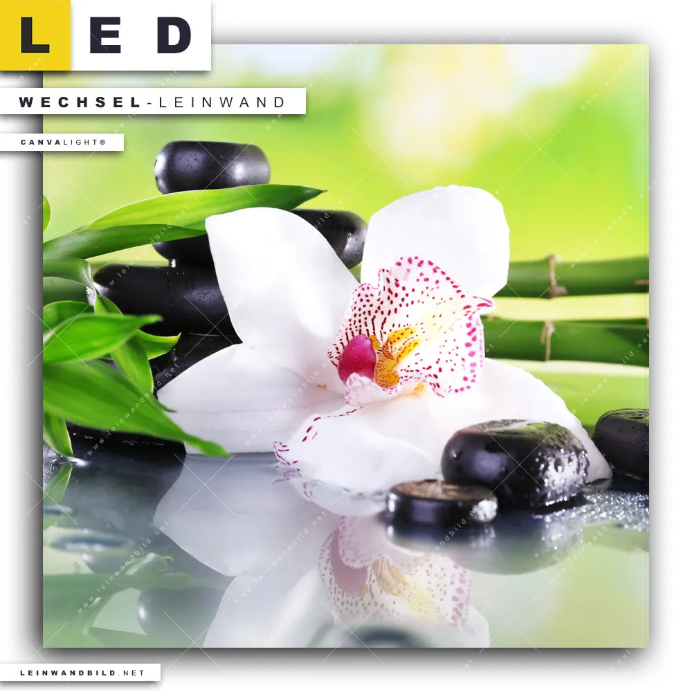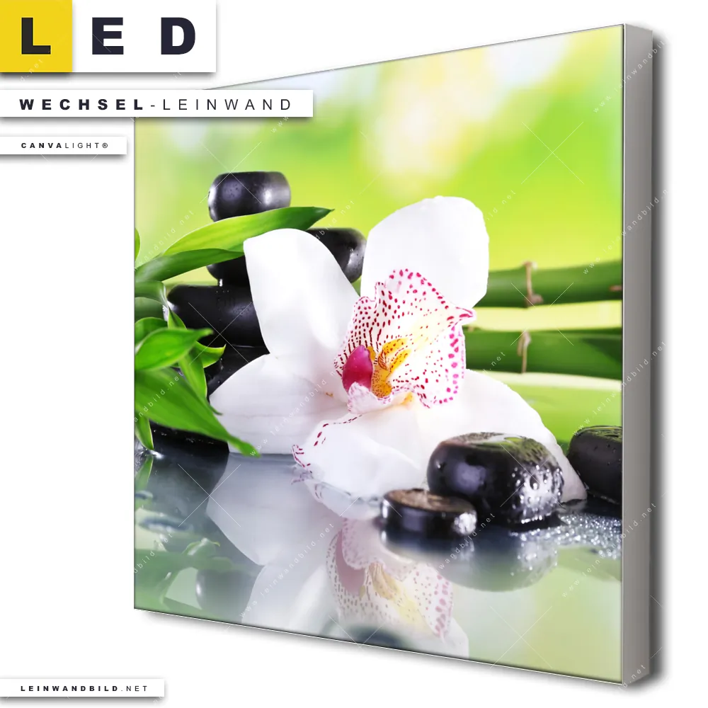 Du bist auf der Suche nach einer Blumen - Botanik, Buddha - Feng Shui Wechsel-Leinwand für Dein LED-Leinwandbild im Quadratischen Format? Begriffe wie Blume, Stein, Bambus, Meditation, Gelassenheit, Wellness, Harmonie, Spa, Yoga haben Dich auf der Suche nach Deiner Ersatz-Leinwand für dein LED Wandbild mit wechselbarer Leinwand inspiriert? Farben wie Weiss, Grün, Schwarz, Blau dürfen auf Deinem neuen Wechselmotiv für Dein XXL Leinwand-LED-Bild nicht fehlen und Leinwände im Natürlich - Realistisch, Minimalistisch Stil für Leuchtbilder passen perfekt zu Deinem Einrichtungsstil?