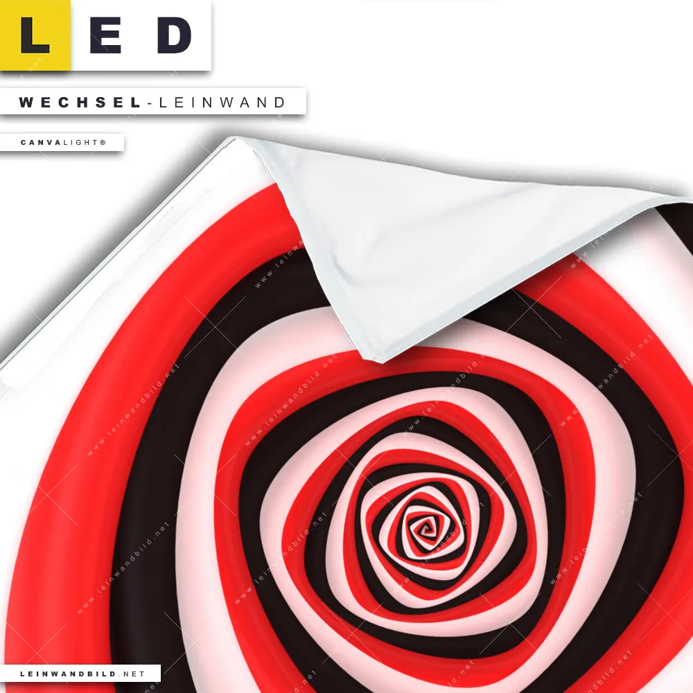Du konfigurierst Deine individuelle LED Wechsel-Leinwand Canvalight® TEX | Spirale in rot weiß schwarz | Quadrat und wir produzieren sie NEU für Dich. Unsere Muster - Texturen Austausch-Fotoleinwände für Canvalight® LED Bilder sind KEINE Lagerware. Du bist Dir unsicher, welches Motiv oder Format das richtige für dein individuelles LED Wechselmotiv auf Leinwand ist, dann helfen wir dir gerne weiter und beraten dich!