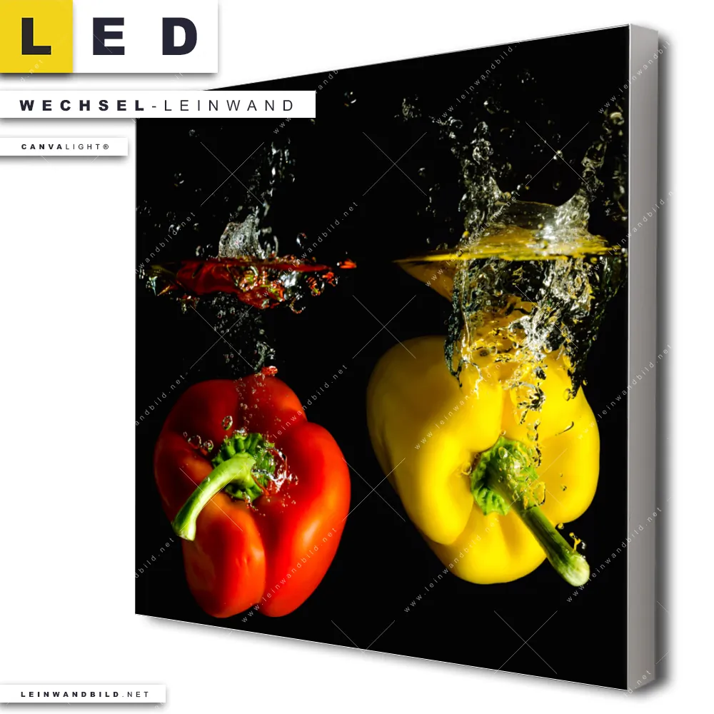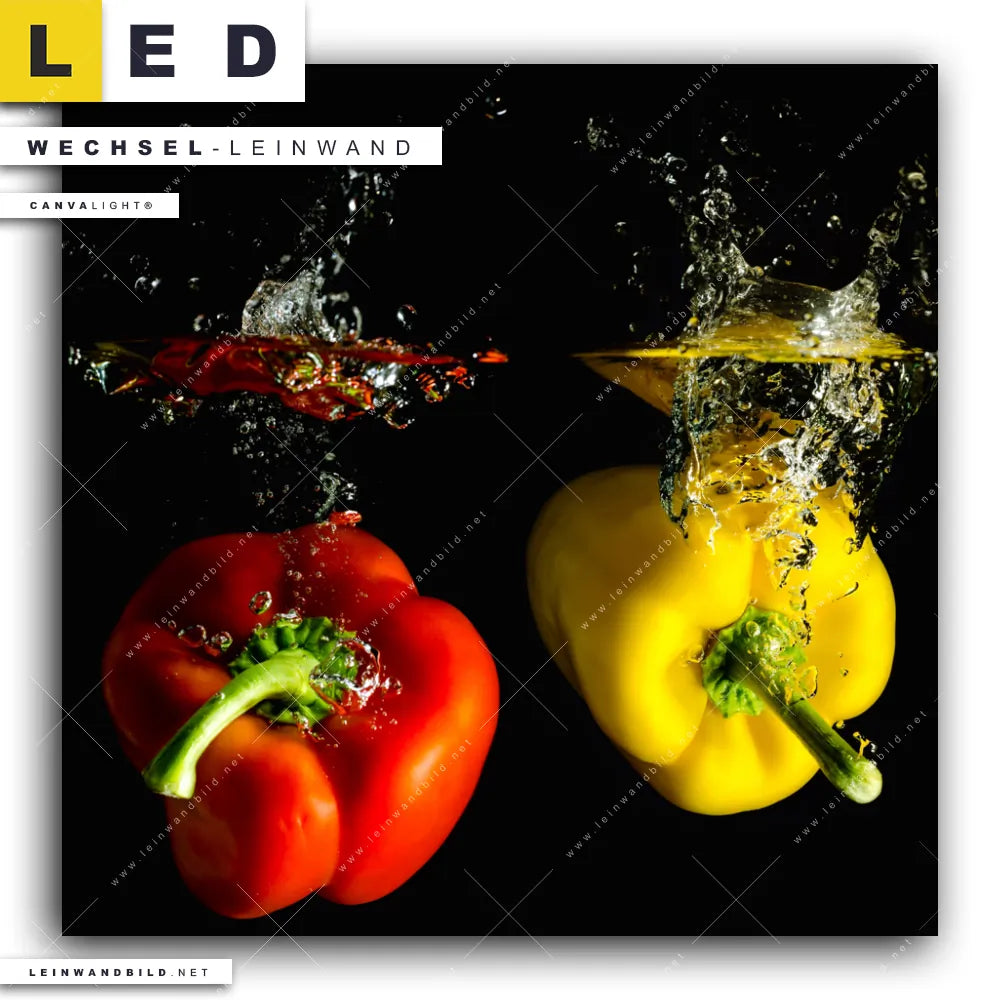 Du bist auf der Suche nach einer Essen - Trinken Wechsel-Leinwand für Dein LED-Leinwandbild im Quadratischen Format? Begriffe wie Gemüse, Wasser, Spritzwasser, Paprika, Küche haben Dich auf der Suche nach Deiner Ersatz-Leinwand für dein LED Wandbild mit wechselbarer Leinwand inspiriert? Farben wie Schwarz, Weiss, Gelb , Grün, Rot, Orange dürfen auf Deinem neuen Wechselmotiv für Dein XXL Leinwand-LED-Bild nicht fehlen und Leinwände im Natürlich - Realistisch Stil für Leuchtbilder passen perfekt zu Deinem Einrichtungsstil?