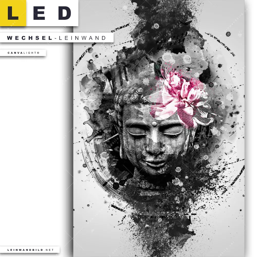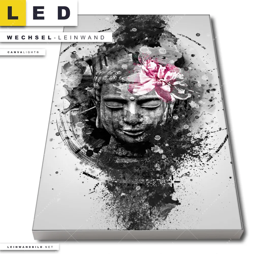 Du bist auf der Suche nach einer Buddha - Feng Shui, Blumen - Botanik Wechsel-Leinwand für Dein LED-Leinwandbild im Hochformat? Begriffe wie Grunge, Streetart, modern, Porträt, Gesicht, Buddha, Meditation, Blüte, Blume haben Dich auf der Suche nach Deiner Ersatz-Leinwand für dein LED Wandbild mit wechselbarer Leinwand inspiriert? Farben wie Weiss, Schwarz, Pink, Grau dürfen auf Deinem neuen Wechselmotiv für Dein XXL Leinwand-LED-Bild nicht fehlen und Leinwände im Grunge, Mixed Media, Modern Art, Schwarz - Weiss, Street Art Stil für Leuchtbilder passen perfekt zu Deinem Einrichtungsstil?