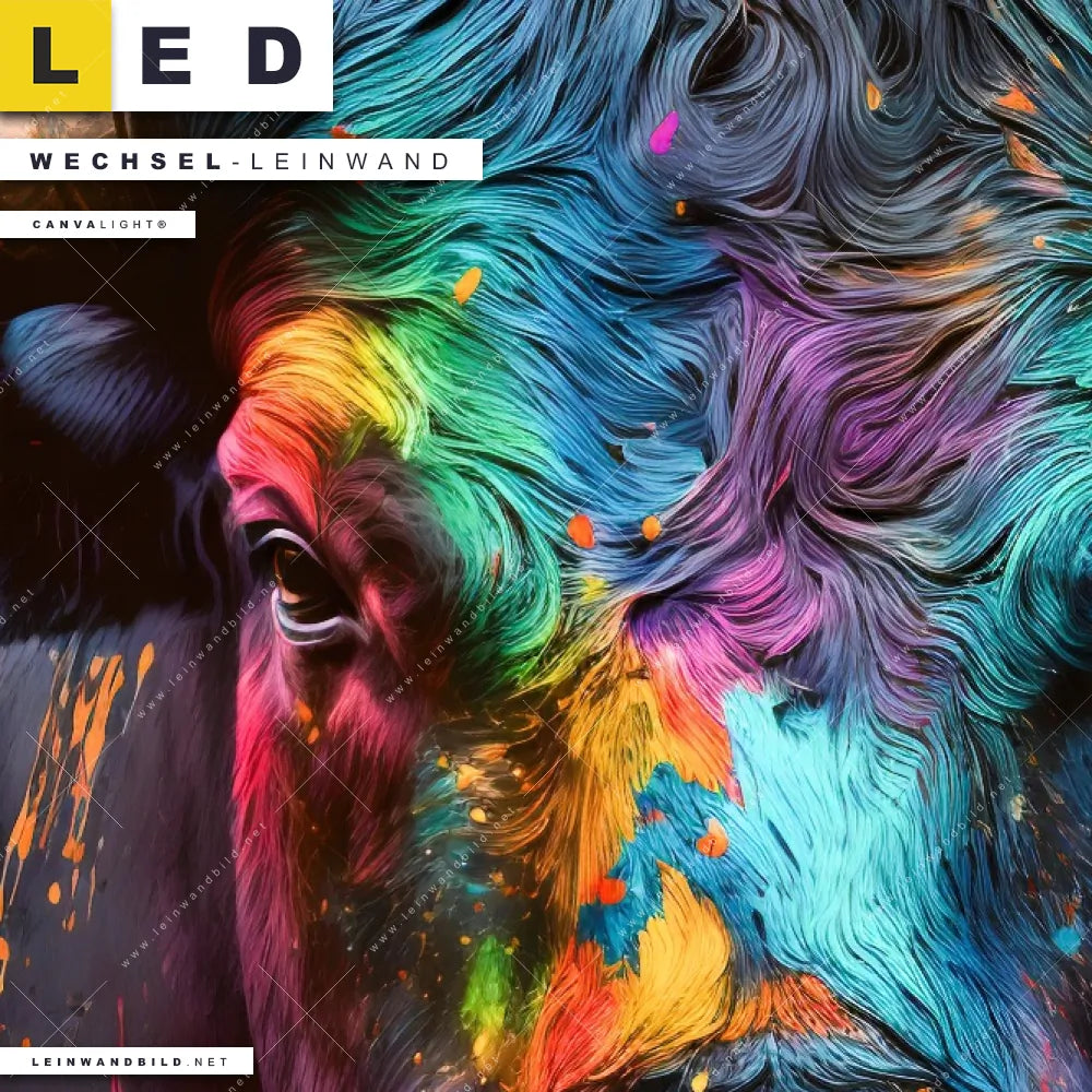 Du bist auf der Suche nach einer Tierwelt Wechsel-Leinwand für Dein LED-Leinwandbild im Quadratischen Format? Begriffe wie Tier, Stier, Hochlandkuh, Highlander, Büffel, Splash, Farbspritzer, Rind, Bulle, Farbe haben Dich auf der Suche nach Deiner Ersatz-Leinwand für dein LED Wandbild mit wechselbarer Leinwand inspiriert? Farben wie Bunt, Schwarz dürfen auf Deinem neuen Wechselmotiv für Dein XXL Leinwand-LED-Bild nicht fehlen und Leinwände im Modern Art, Pop Art Stil für Leuchtbilder passen perfekt zu Deinem Einrichtungsstil?