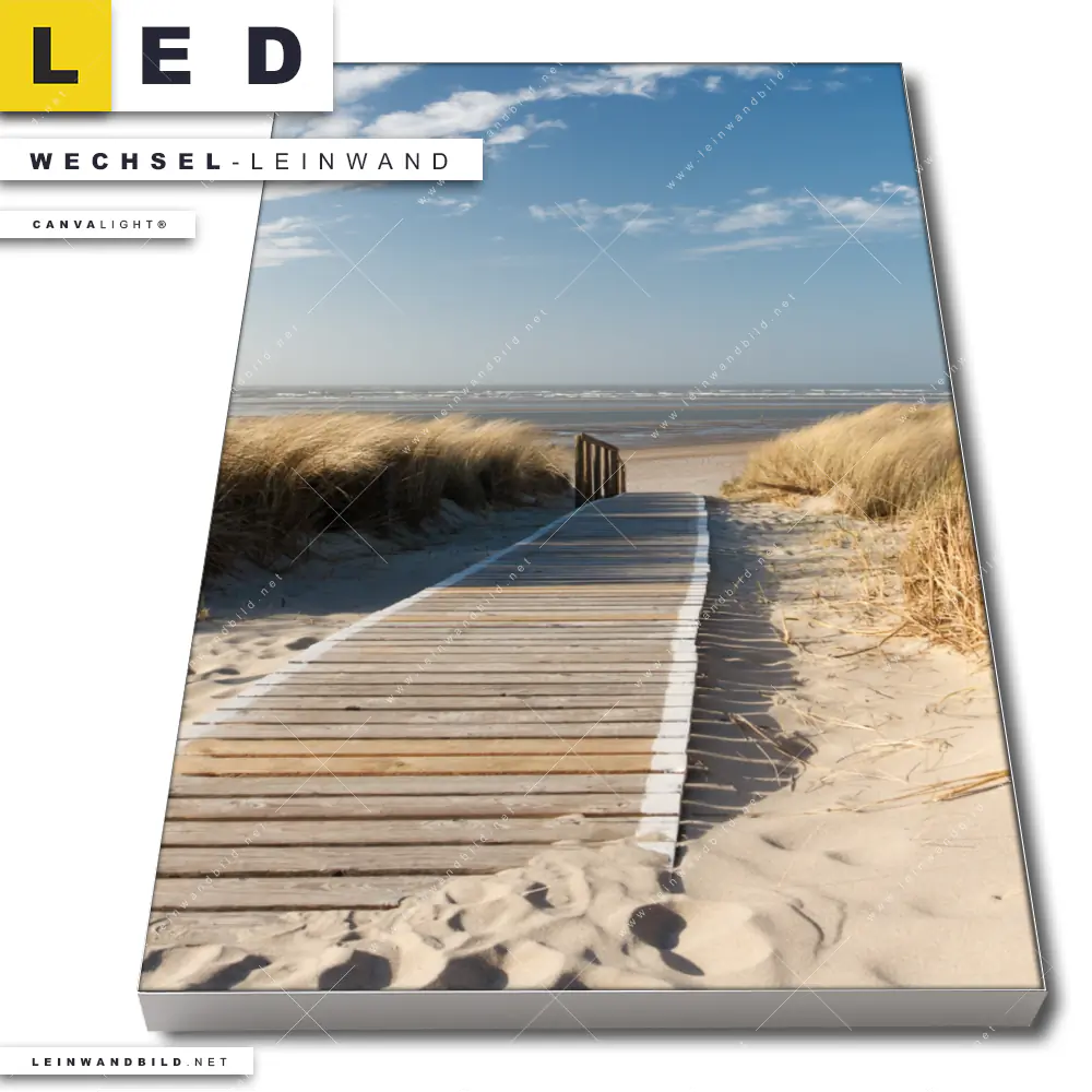 Du bist auf der Suche nach einer Landschaften, Strand - Meer Wechsel-Leinwand für Dein LED-Leinwandbild im Hochformat? Begriffe wie Deutschland, Sommer, Weg, Dünen, Gräser, Urlaub, Reisen, Nordsee, Ostsee, Steg, Küste, Sand, Meer, Strand haben Dich auf der Suche nach Deiner Ersatz-Leinwand für dein LED Wandbild mit wechselbarer Leinwand inspiriert? Farben wie Beige, Blau, Braun dürfen auf Deinem neuen Wechselmotiv für Dein XXL Leinwand-LED-Bild nicht fehlen und Leinwände im Natürlich - Realistisch Stil für Leuchtbilder passen perfekt zu Deinem Einrichtungsstil?