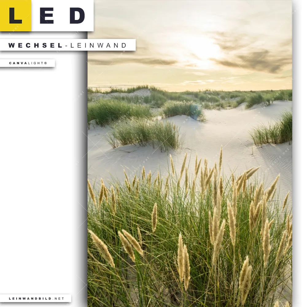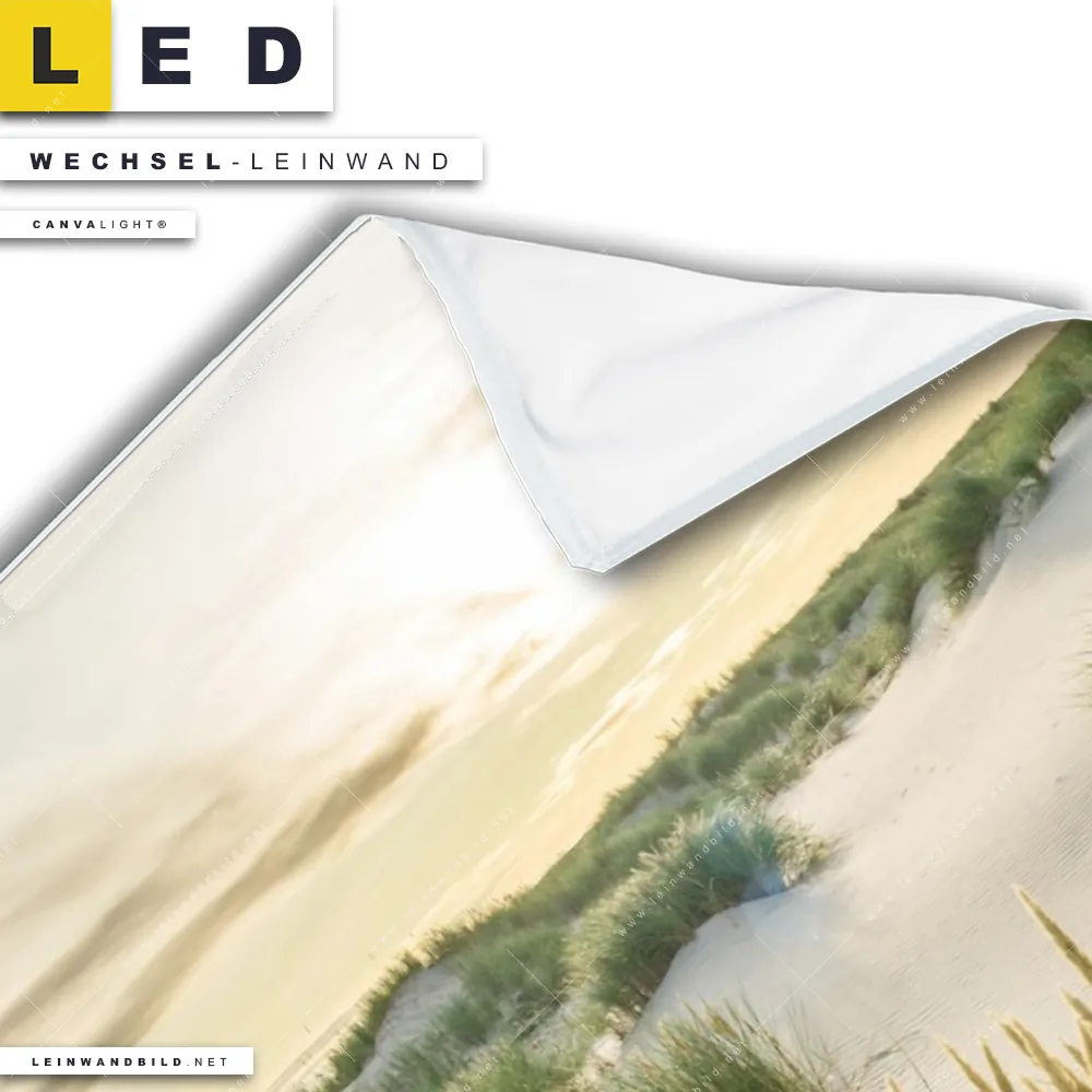 LED Wechsel-Leinwand Canvalight® TEX | Strand mit Sanddünen | Hochformat