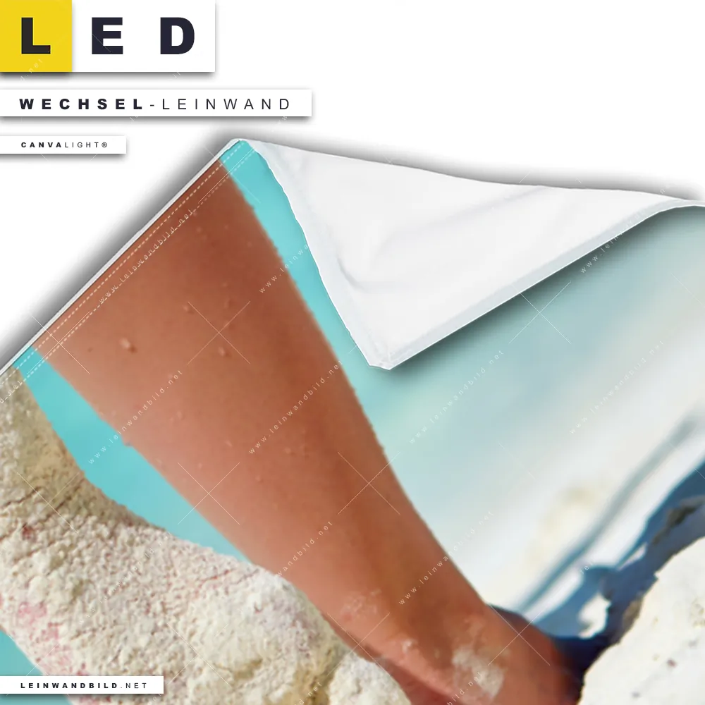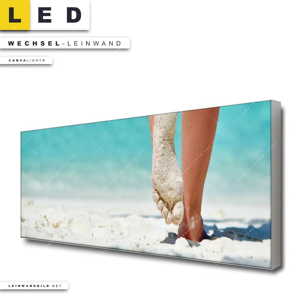 Du konfigurierst Deine individuelle LED Wechsel-Leinwand Canvalight® TEX | Strandspaziergang | Panorama und wir produzieren sie NEU für Dich. Unsere Strand - Meer, Porträts - Menschen Austausch-Fotoleinwände für Canvalight® LED Bilder sind KEINE Lagerware. Du bist Dir unsicher, welches Motiv oder Format das richtige für dein individuelles LED Wechselmotiv auf Leinwand ist, dann helfen wir dir gerne weiter und beraten dich!