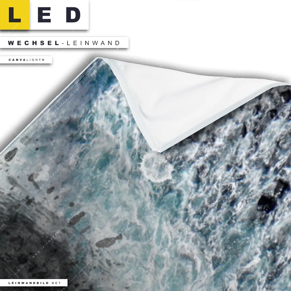 Dann sollte die Wechsel-Leinwand Canvalight® TEX | Stürmische See | Panorama den Weg zu Dir finden. Die Austausch-Leinwand Welle der Freiheit - passend für unsere stufenlos dimmbaren, steckerfertigen Leinwandbilder im LED Leuchtrahmen mit Fernbedienung und optionaler Farbtemperatursteuerung - fügt sich als Eye-Catcher harmonisch in jedes Bar - Gastronomie, Büro - Kanzlei, Flur - Eingangsbereich, Wohnzimmer - Schlafzimmer Raumkonzept ein.