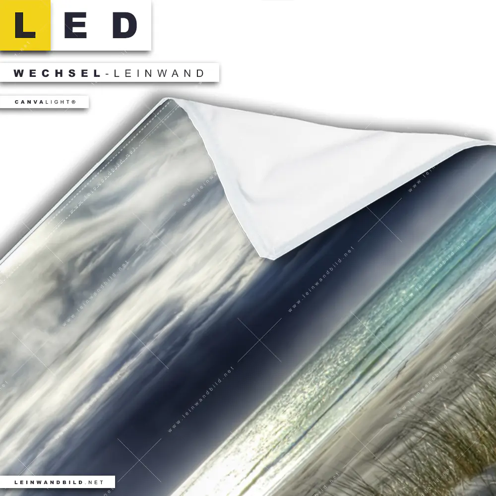 Du konfigurierst Deine individuelle LED Wechsel-Leinwand Canvalight® TEX | Stürmischer Himmel am Strand | Hochformat und wir produzieren sie NEU für Dich. Unsere Landschaften, Strand - Meer Austausch-Fotoleinwände für Canvalight® LED Bilder sind KEINE Lagerware. Du bist Dir unsicher, welches Motiv oder Format das richtige für dein individuelles LED Wechselmotiv auf Leinwand ist, dann helfen wir dir gerne weiter und beraten dich!