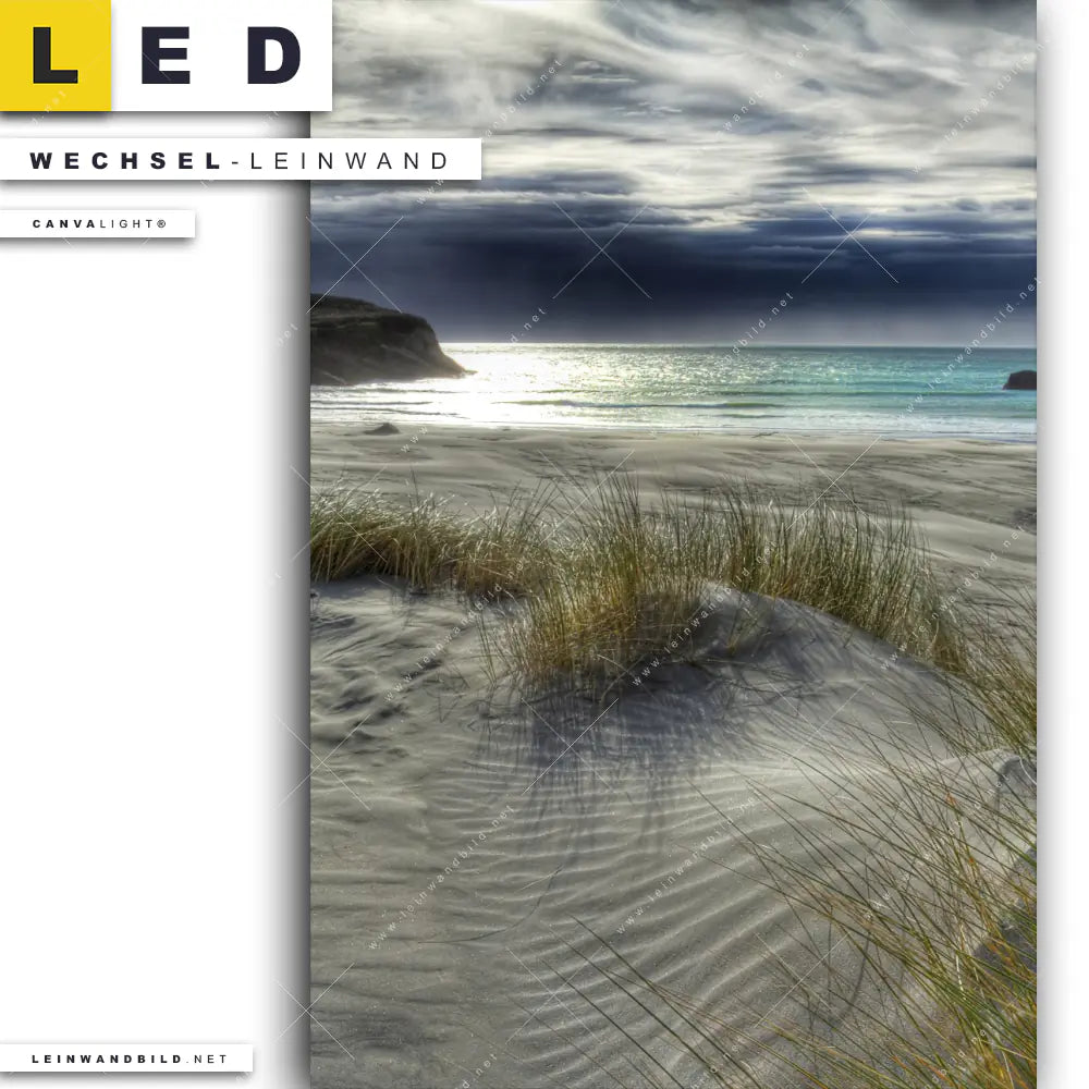 LED Wechsel-Leinwand Canvalight® TEX | Stürmischer Himmel am Strand | Hochformat