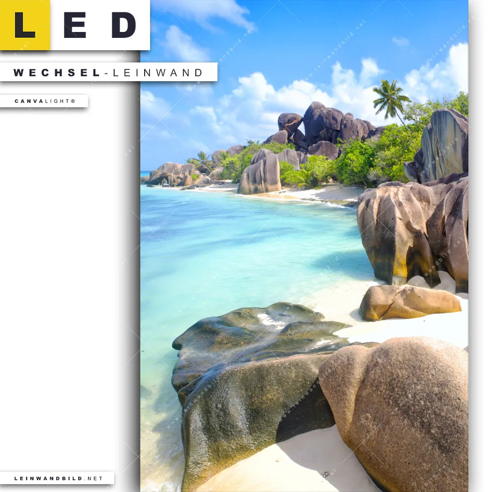 Du bist auf der Suche nach einer Landschaften, Strand - Meer Wechsel-Leinwand für Dein LED-Leinwandbild im Hochformat? Begriffe wie Sand, Ozean, Wasser, Küste, Horizont, Bucht, Insel, Lagune, Felsen, Palmen, Südsee - Karibik, Urlaub - Reisen haben Dich auf der Suche nach Deiner Ersatz-Leinwand für dein LED Wandbild mit wechselbarer Leinwand inspiriert? Farben wie Blau, Türkis, Grün, Beige, Braun dürfen auf Deinem neuen Wechselmotiv für Dein XXL Leinwand-LED-Bild nicht fehlen und Leinwände im Natürlich - Realistisch Stil für Leuchtbilder passen perfekt zu Deinem Einrichtungsstil?