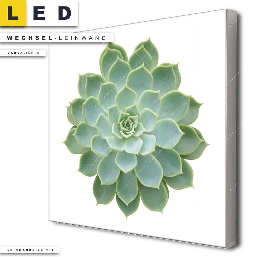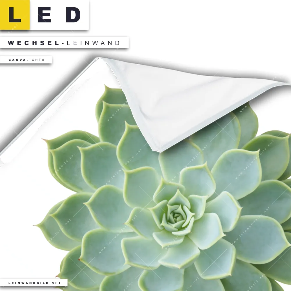 Du konfigurierst Deine individuelle LED Wechsel-Leinwand Canvalight® TEX | Sukkulente No.2 | Quadrat und wir produzieren sie NEU für Dich. Unsere Blumen - Botanik Austausch-Fotoleinwände für Canvalight® LED Bilder sind KEINE Lagerware. Du bist Dir unsicher, welches Motiv oder Format das richtige für dein individuelles LED Wechselmotiv auf Leinwand ist, dann helfen wir dir gerne weiter und beraten dich!
