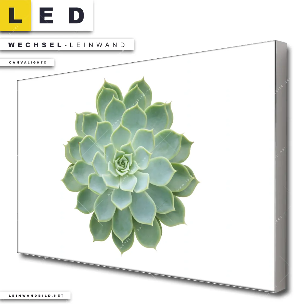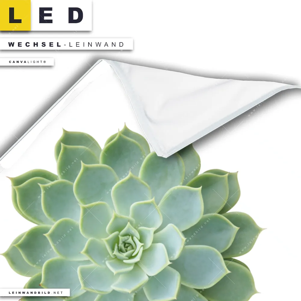 Du konfigurierst Deine individuelle LED Wechsel-Leinwand Canvalight® TEX | Sukkulente No.2 | Querformat und wir produzieren sie NEU für Dich. Unsere Blumen - Botanik Austausch-Fotoleinwände für Canvalight® LED Bilder sind KEINE Lagerware. Du bist Dir unsicher, welches Motiv oder Format das richtige für dein individuelles LED Wechselmotiv auf Leinwand ist, dann helfen wir dir gerne weiter und beraten dich!