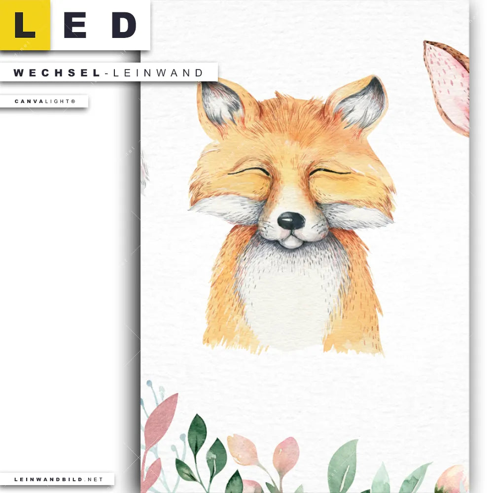 Du bist auf der Suche nach einer Tierwelt Wechsel-Leinwand für Dein LED-Leinwandbild im Hochformat? Begriffe wie Kinder, Tiere, Kunst, Freunde, Nachtlicht, träumen, Fuchs, Reh, Eule, Waldtiere, Wald haben Dich auf der Suche nach Deiner Ersatz-Leinwand für dein LED Wandbild mit wechselbarer Leinwand inspiriert? Farben wie Beige, Ocker, Orange, Braun dürfen auf Deinem neuen Wechselmotiv für Dein XXL Leinwand-LED-Bild nicht fehlen und Leinwände im Modern Art Stil für Leuchtbilder passen perfekt zu Deinem Einrichtungsstil?