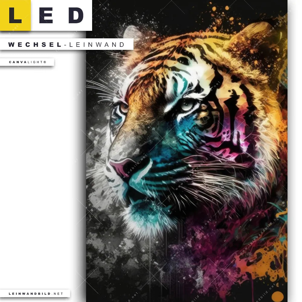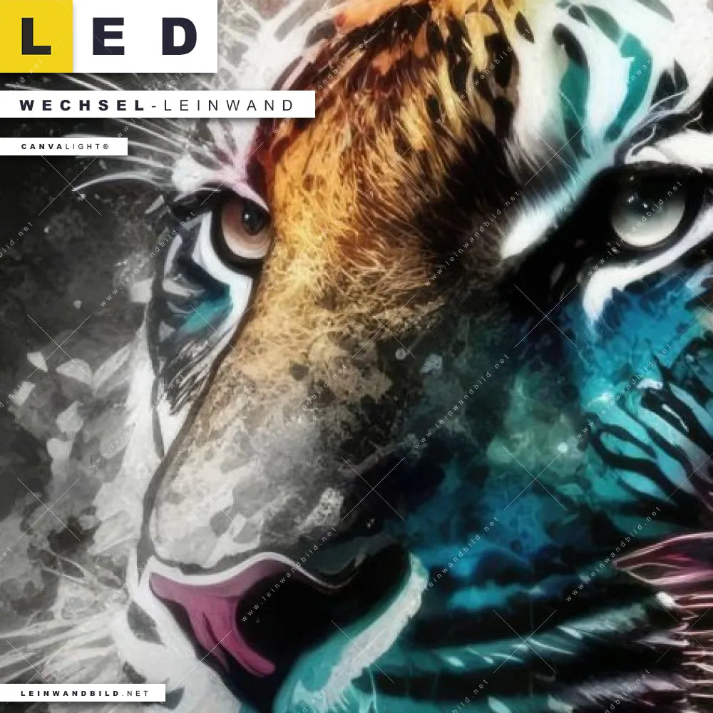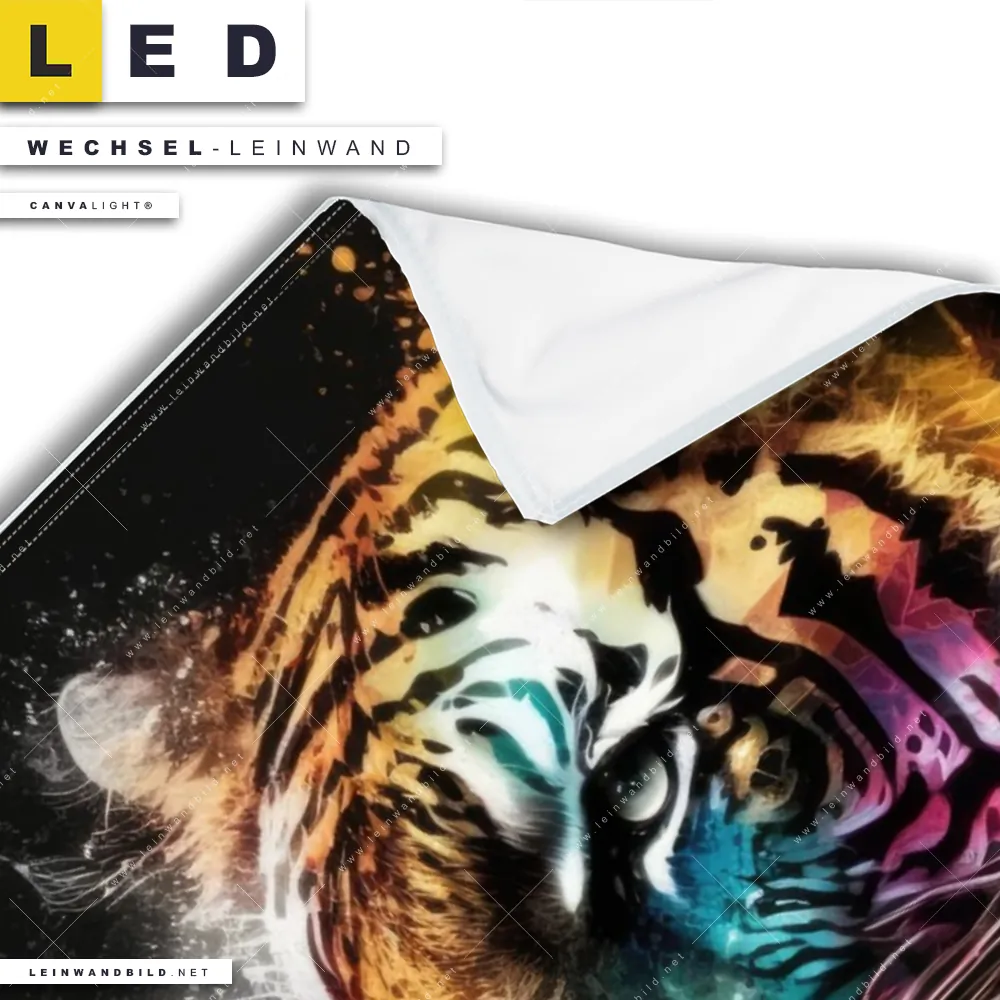 LED Wechsel-Leinwand Canvalight® TEX | Tiger im Farbrausch | Hochformat