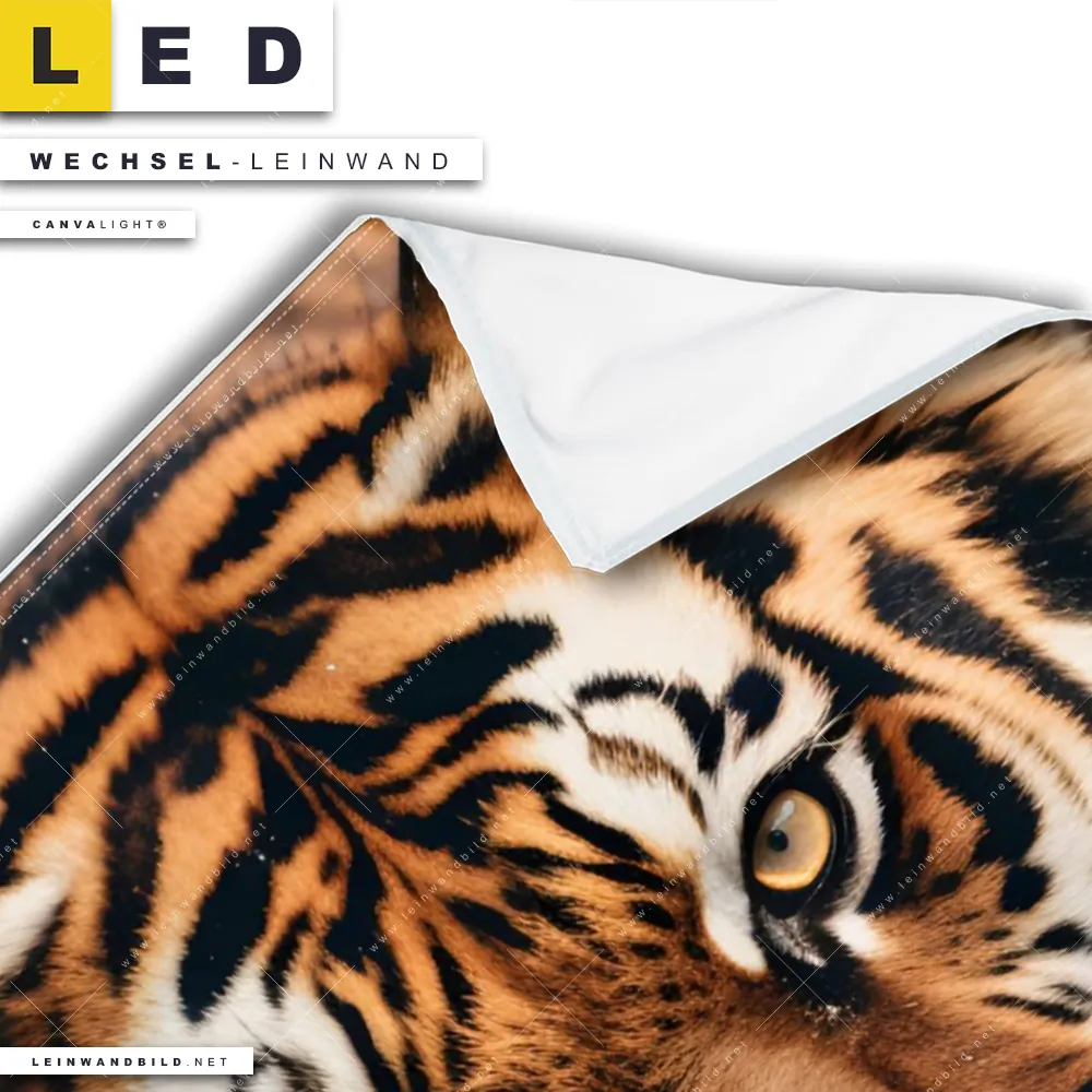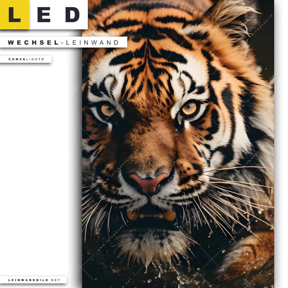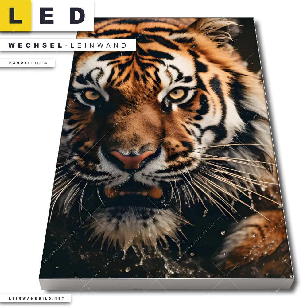 LED Wechsel-Leinwand Canvalight® TEX | Tiger im Wasser | Hochformat