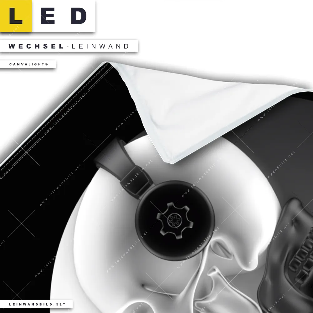 LED Wechsel-Leinwand Canvalight® TEX | Totenkopf Yin Yang | Hochformat