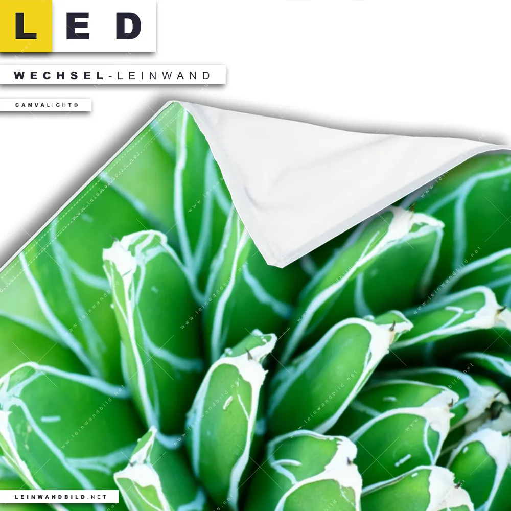 Dann sollte die Wechsel-Leinwand Canvalight® TEX | Tropische Pflanze | Hochformat den Weg zu Dir finden. Die Austausch-Leinwand Agave mit spitzen Blättern - passend für unsere stufenlos dimmbaren, steckerfertigen Leinwandbilder im Leuchtrahmen mit Fernbedienung und optionaler Farbtemperatursteuerung - fügt sich als Eye-Catcher harmonisch in jedes Arzt - Praxis, Büro - Kanzlei, Wohnzimmer - Schlafzimmer, Flur - Eingangsbereich Raumkonzept ein.