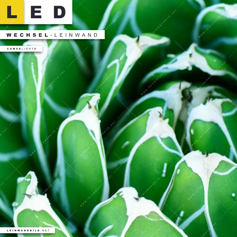 Bitte beachte, dass die Farben, der auf dem Monitor abgebildeten Agave mit spitzen Blättern Darstellung, möglicherweise von den Originalfarben deiner Canvalight® TEX Wechsel-Leinwand abweichen können.