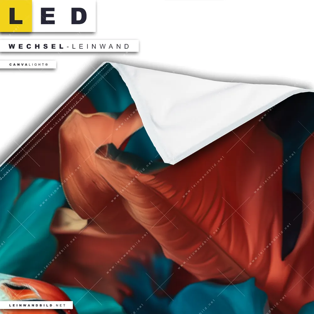 Du bist auf der Suche nach einer Tierwelt, Blumen - Botanik Wechsel-Leinwand für Dein LED-Leinwandbild im Panorama-Format? Begriffe wie Vogel, Flamingo, Dschungel, Wasser, Blätter, Pflanzen haben Dich auf der Suche nach Deiner Ersatz-Leinwand für dein extra breites LED Wandbild mit wechselbarer Leinwand inspiriert? Farben wie Orange, Rot, Weiss, Schwarz dürfen auf Deinem neuen Wechselmotiv für Dein XXL Leinwand-LED-Bild nicht fehlen und Leinwände im Floral, Modern Art, Natürlich - Realistisch Stil für Leuchtbilder passen perfekt zu Deinem Einrichtungsstil?