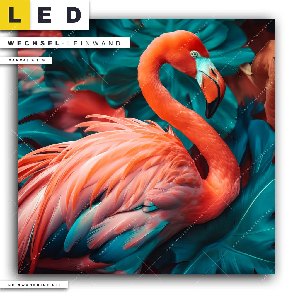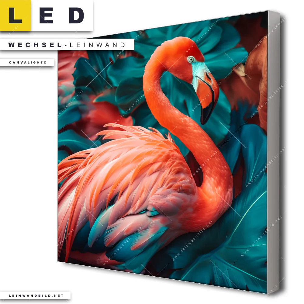 Du bist auf der Suche nach einer Tierwelt, Blumen - Botanik Wechsel-Leinwand für Dein LED-Leinwandbild im Quadratischen Format? Begriffe wie Vogel, Flamingo, Dschungel, Wasser, Blätter, Pflanzen haben Dich auf der Suche nach Deiner Ersatz-Leinwand für dein LED Wandbild mit wechselbarer Leinwand inspiriert? Farben wie Orange, Rot, Weiss, Schwarz dürfen auf Deinem neuen Wechselmotiv für Dein XXL Leinwand-LED-Bild nicht fehlen und Leinwände im Floral, Modern Art, Natürlich - Realistisch Stil für Leuchtbilder passen perfekt zu Deinem Einrichtungsstil?