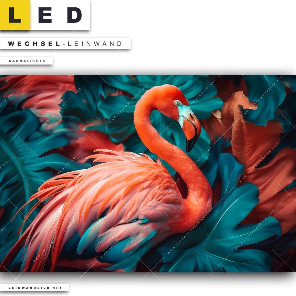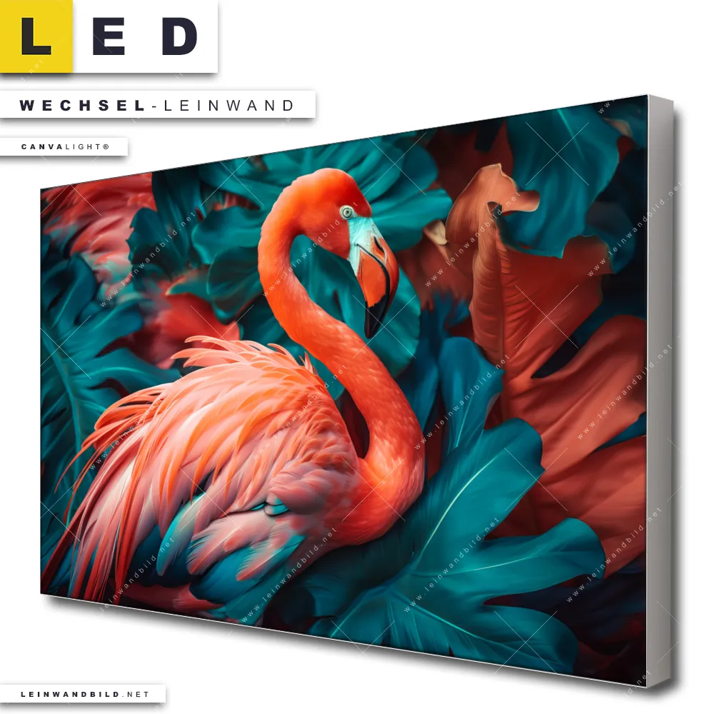 LED Wechsel-Leinwand Canvalight® TEX | Tropischer Flamingo Traum | Querformat