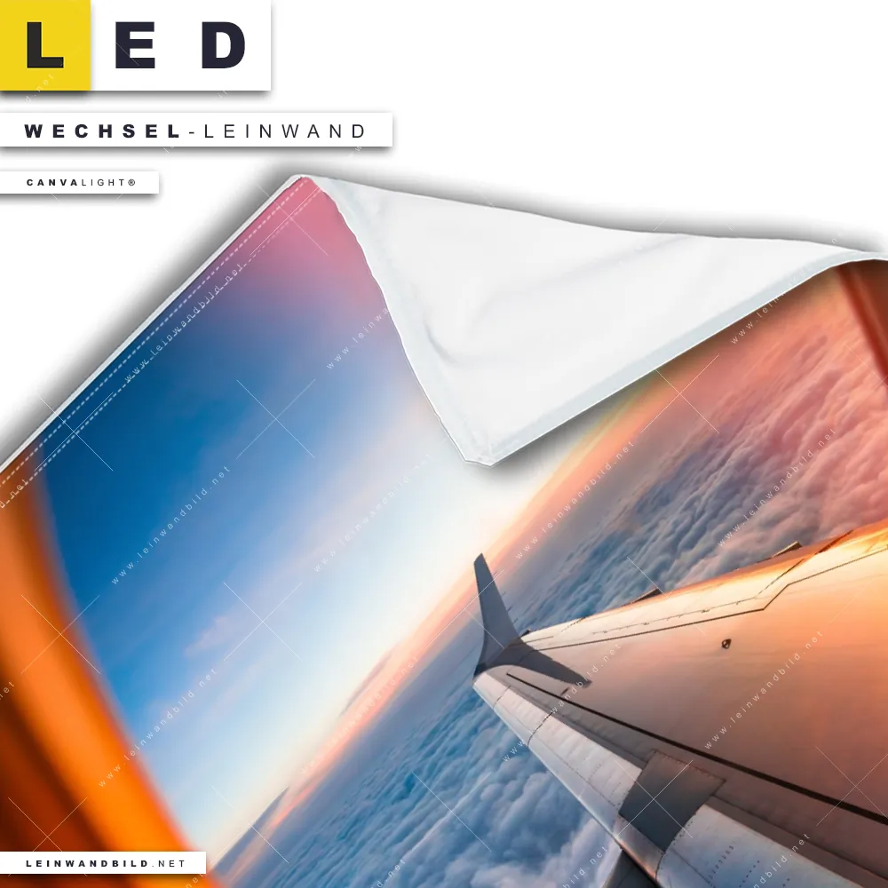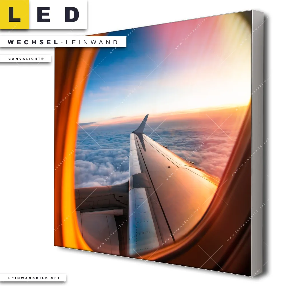 Du bist auf der Suche nach einer Fensterblick Wechsel-Leinwand für Dein LED-Leinwandbild im Quadratischen Format? Begriffe wie Urlaub, Reisen, Wolken, Flugzeug, fliegen, Fensterblick, über den Wolken haben Dich auf der Suche nach Deiner Ersatz-Leinwand für dein LED Wandbild mit wechselbarer Leinwand inspiriert? Farben wie Blau, Orange dürfen auf Deinem neuen Wechselmotiv für Dein XXL Leinwand-LED-Bild nicht fehlen und Leinwände im Natürlich - Realistisch Stil für Leuchtbilder passen perfekt zu Deinem Einrichtungsstil?