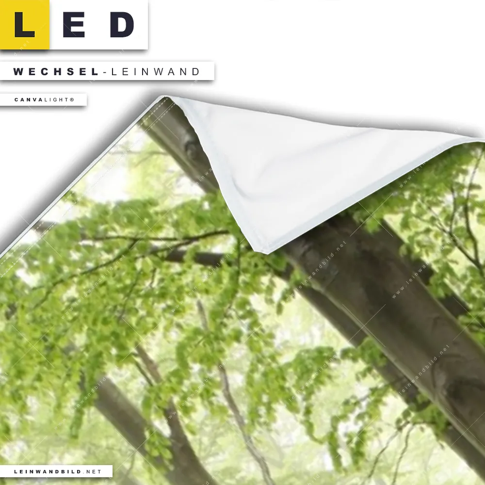 Du konfigurierst Deine individuelle LED Wechsel-Leinwand Canvalight® TEX | Unberührte Natur - Der Wald | Schmal und wir produzieren sie NEU für Dich. Unsere Landschaften, Wald - Bäume Austausch-Fotoleinwände für Canvalight® LED Bilder sind KEINE Lagerware. Du bist Dir unsicher, welches Motiv oder Format das richtige für dein individuelles LED Wechselmotiv auf Leinwand ist, dann helfen wir dir gerne weiter und beraten dich!