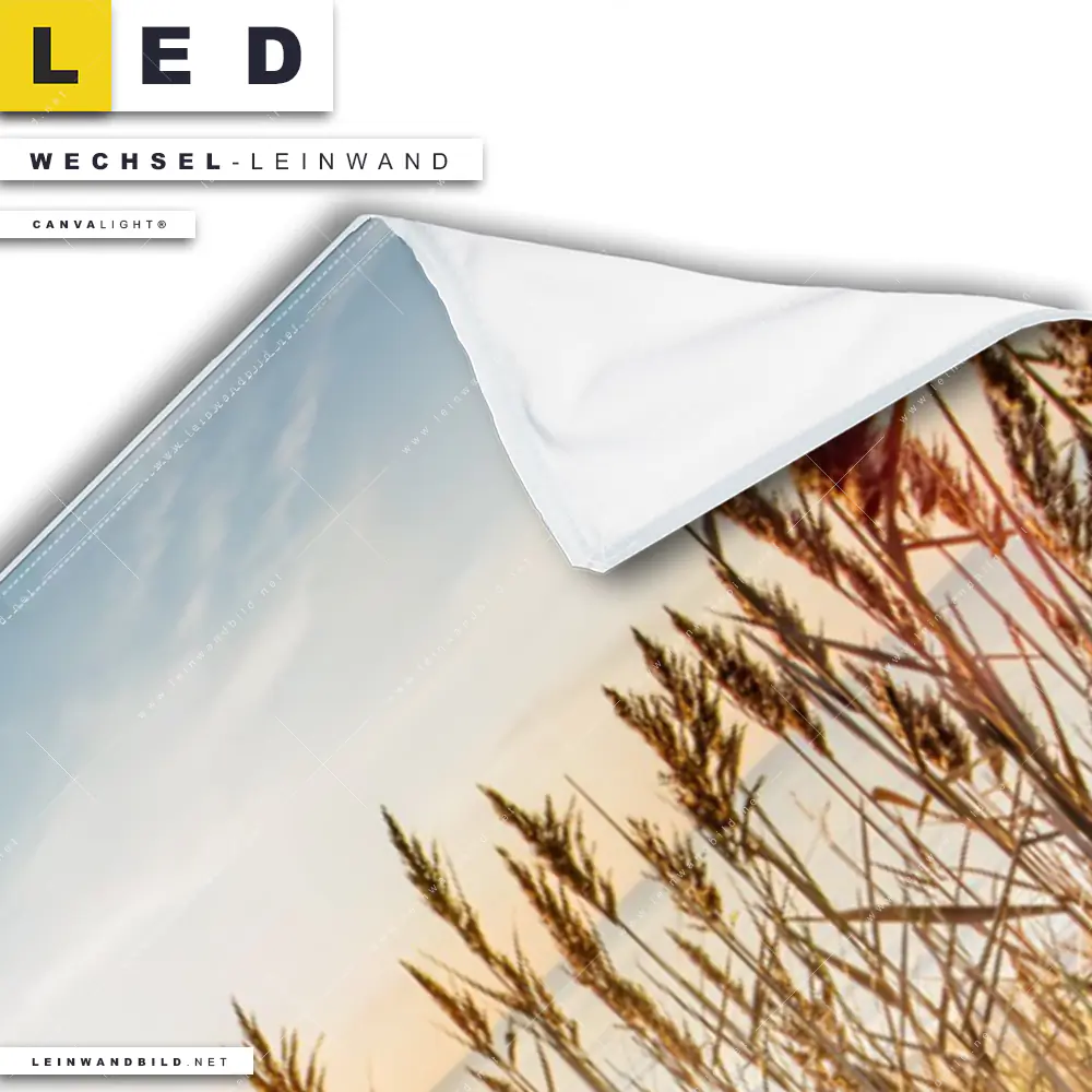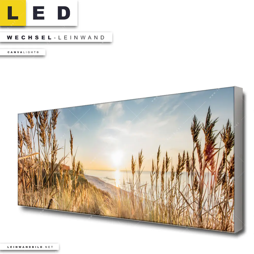 Du bist auf der Suche nach einer Landschaften, Strand - Meer Wechsel-Leinwand für Dein LED-Leinwandbild im Panorama-Format? Begriffe wie Deutschland, Sommer, Dünen, Gräser, Urlaub, Reisen, Ostsee, Nordsee, Strand, Meer, Sonnenuntergang, Sonnenaufgang haben Dich auf der Suche nach Deiner Ersatz-Leinwand für dein extra breites LED Wandbild mit wechselbarer Leinwand inspiriert? Farben wie Beige, Blau, Braun dürfen auf Deinem neuen Wechselmotiv für Dein XXL Leinwand-LED-Bild nicht fehlen und Leinwände im Retro - Vintage, Natürlich - Realistisch Stil für Leuchtbilder passen perfekt zu Deinem Einrichtungsstil?