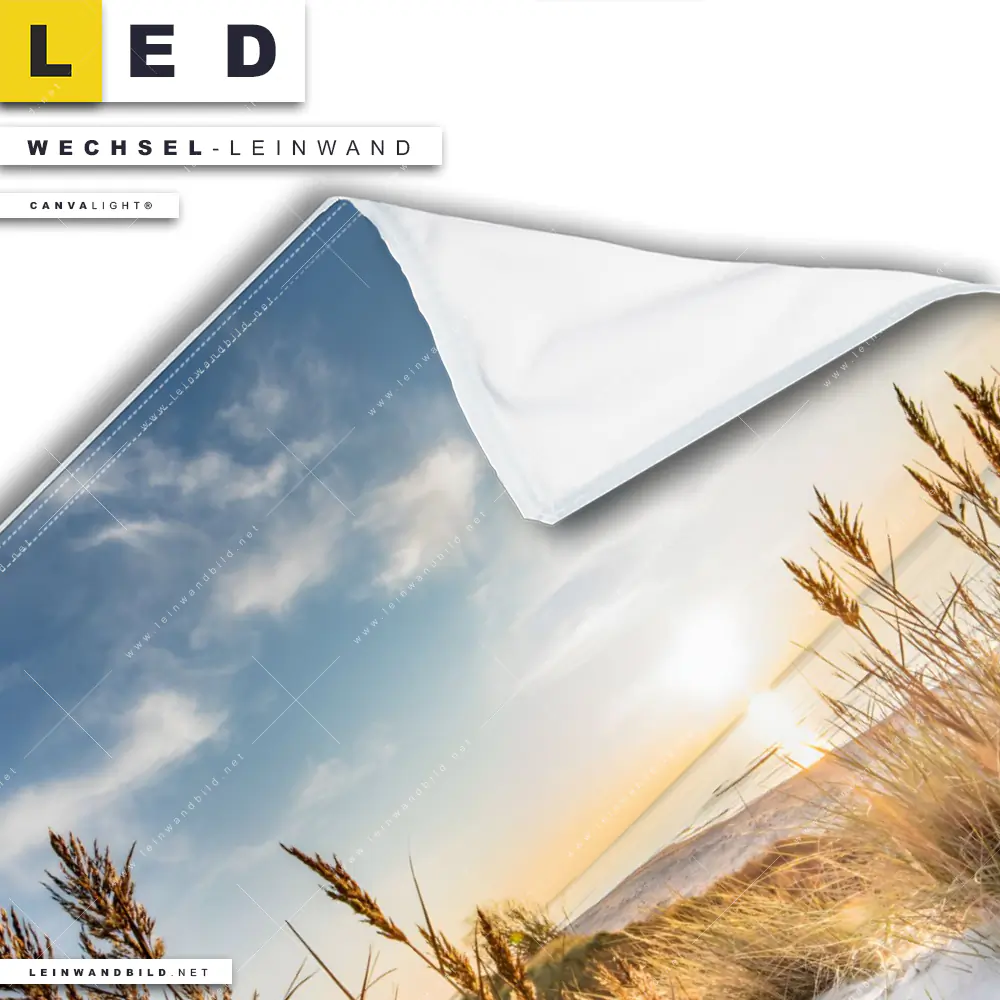 Du bist auf der Suche nach einer Landschaften, Strand - Meer Wechsel-Leinwand für Dein LED-Leinwandbild im Quadratischen Format? Begriffe wie Deutschland, Sommer, Dünen, Gräser, Urlaub, Reisen, Ostsee, Nordsee, Strand, Meer, Sonnenuntergang, Sonnenaufgang haben Dich auf der Suche nach Deiner Ersatz-Leinwand für dein LED Wandbild mit wechselbarer Leinwand inspiriert? Farben wie Beige, Blau, Braun dürfen auf Deinem neuen Wechselmotiv für Dein XXL Leinwand-LED-Bild nicht fehlen und Leinwände im Retro - Vintage, Natürlich - Realistisch Stil für Leuchtbilder passen perfekt zu Deinem Einrichtungsstil?