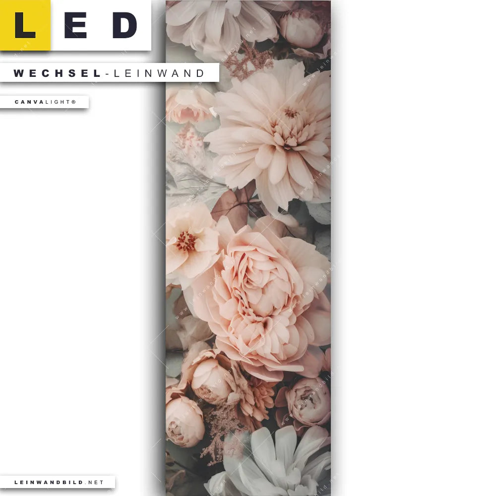 LED Wechsel-Leinwand Canvalight® TEX | Vintage Blüten im Retro-Stil | Schmal