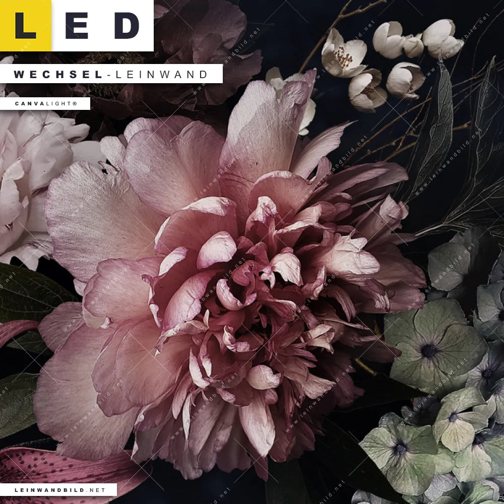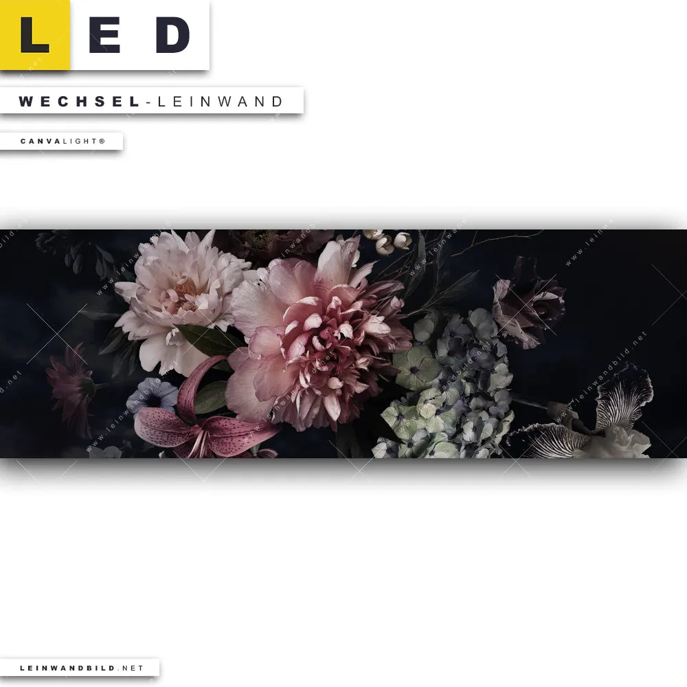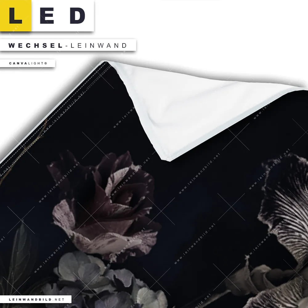 Du konfigurierst Deine individuelle LED Wechsel-Leinwand Canvalight® TEX | Vintage Blumen | Panorama und wir produzieren sie NEU für Dich. Unsere Blumen - Botanik Austausch-Fotoleinwände für Canvalight® LED Bilder sind KEINE Lagerware. Du bist Dir unsicher, welches Motiv oder Format das richtige für dein individuelles LED Wechselmotiv auf Leinwand ist, dann helfen wir dir gerne weiter und beraten dich!