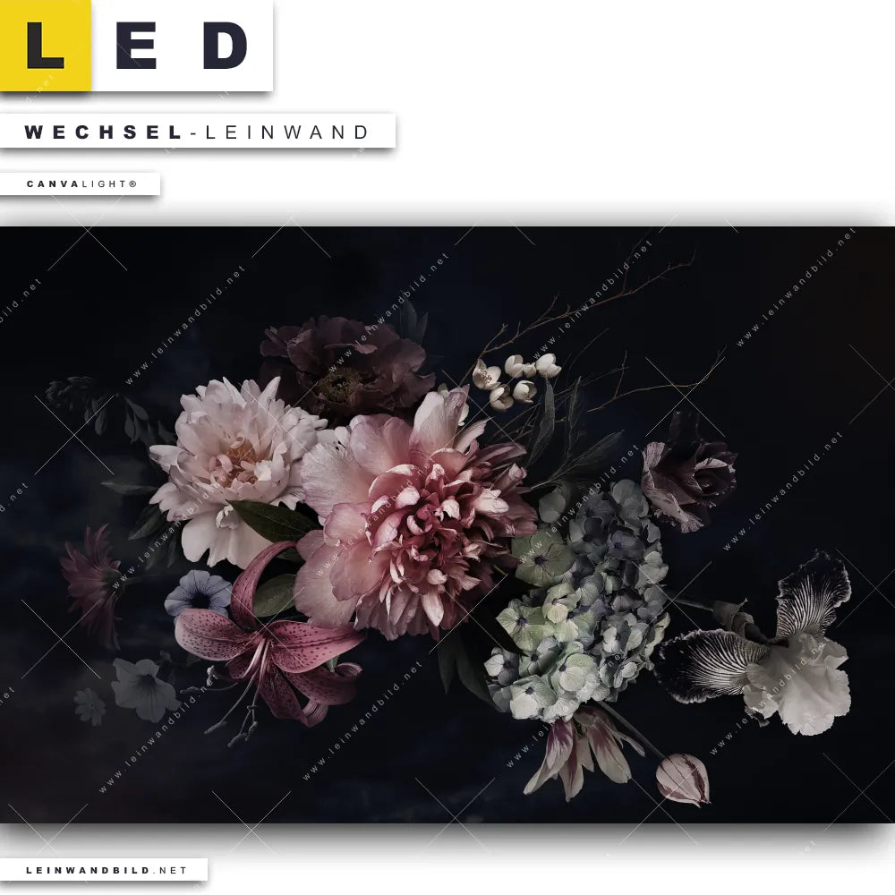 Dann sollte die Wechsel-Leinwand Canvalight® TEX | Vintage Blumen | Querformat den Weg zu Dir finden. Die Austausch-Leinwand Blütenzauber vor dunklem Hintergrund - passend für unsere stufenlos dimmbaren, steckerfertigen Leinwandbilder im Leuchtrahmen mit Fernbedienung und optionaler Farbtemperatursteuerung - fügt sich als Eye-Catcher harmonisch in jedes Arzt - Praxis, Büro - Kanzlei, Wohnzimmer - Schlafzimmer Raumkonzept ein.