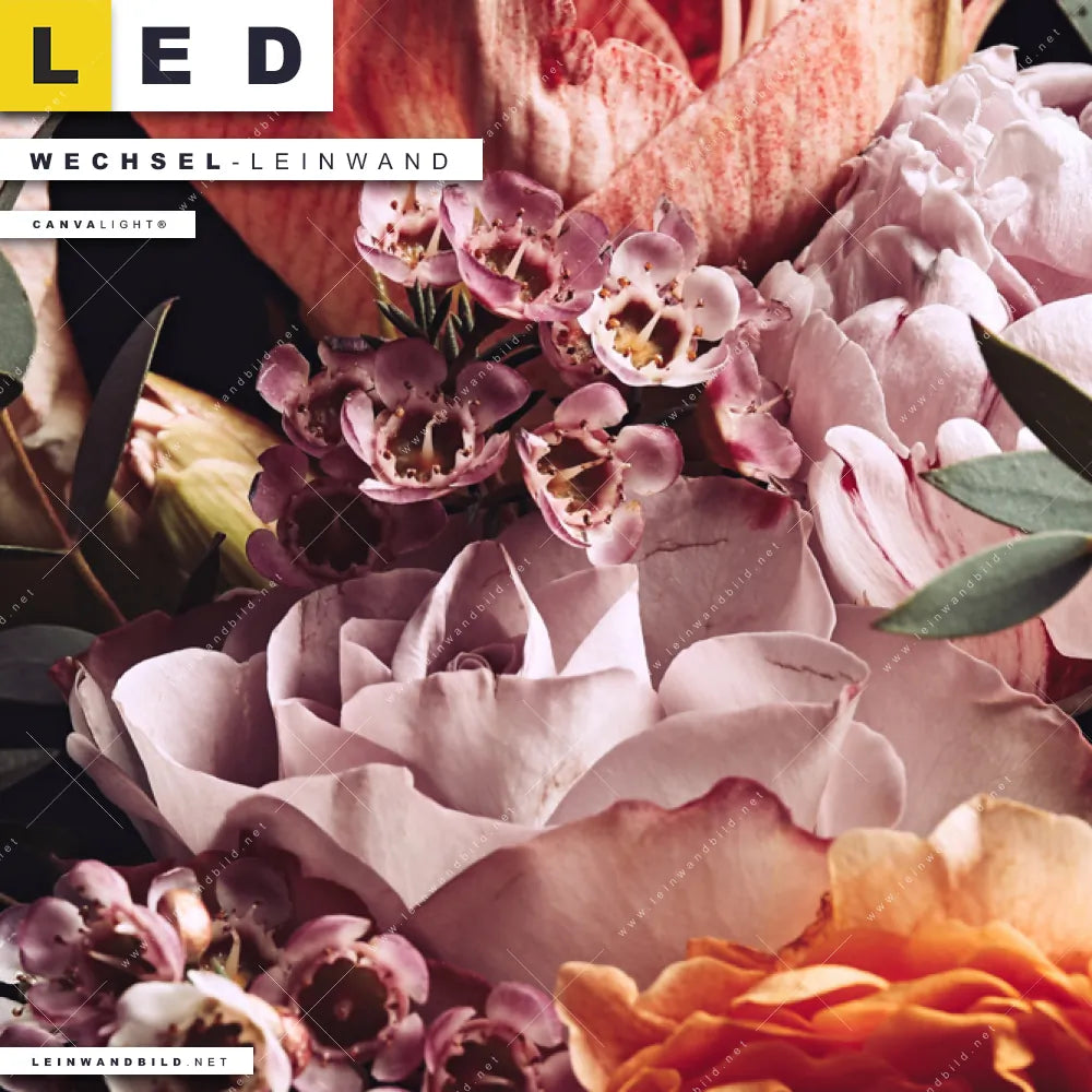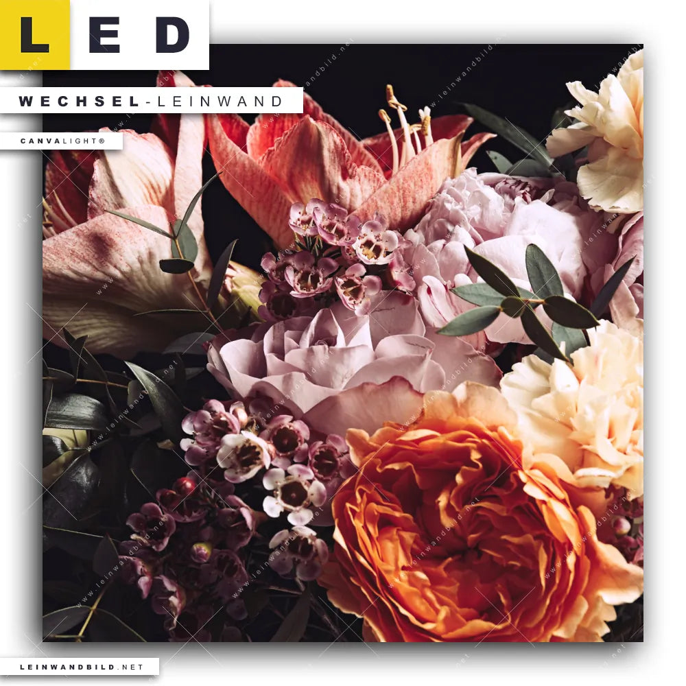 Du konfigurierst Deine individuelle LED Wechsel-Leinwand Canvalight® TEX | Vintage Blumenstrauß | Quadrat und wir produzieren sie NEU für Dich. Unsere Blumen - Botanik Austausch-Fotoleinwände für Canvalight® LED Bilder sind KEINE Lagerware. Du bist Dir unsicher, welches Motiv oder Format das richtige für dein individuelles LED Wechselmotiv auf Leinwand ist, dann helfen wir dir gerne weiter und beraten dich!
