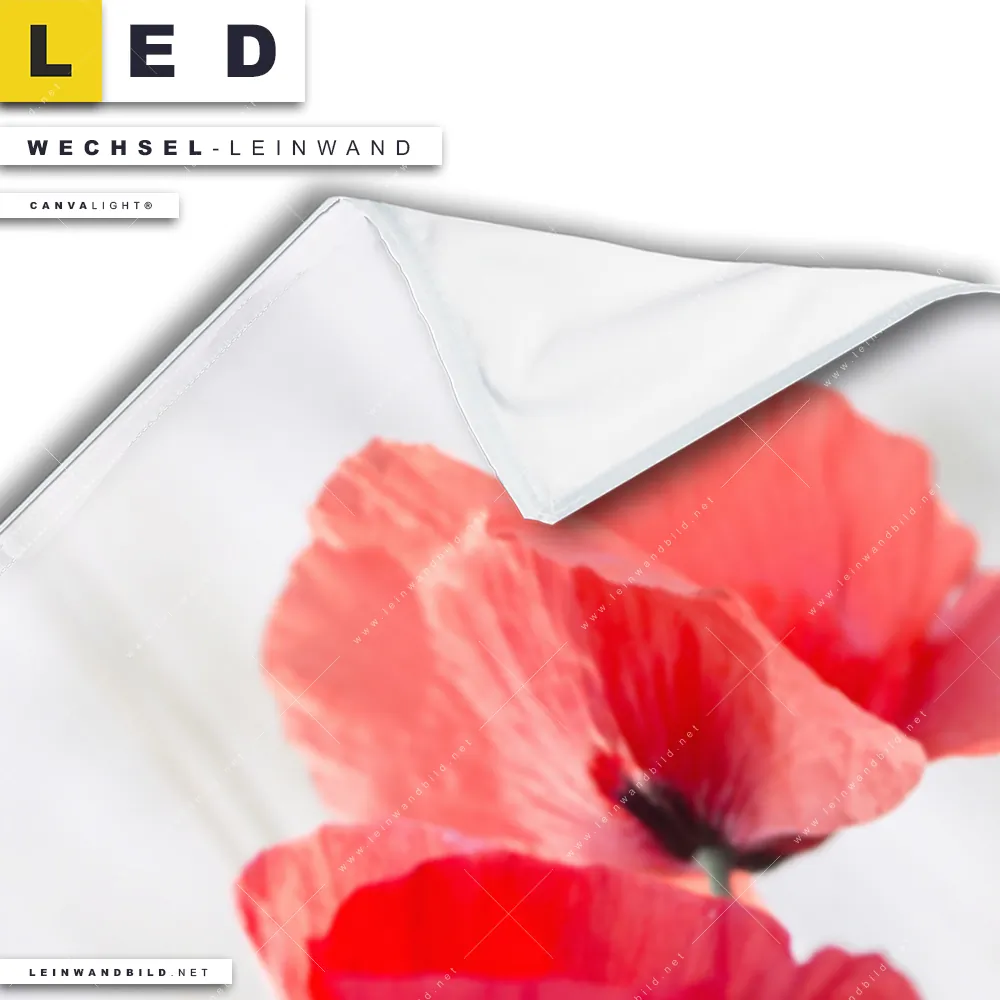 Du konfigurierst Deine individuelle LED Wechsel-Leinwand Canvalight® TEX | Vintage Klatschmohn | Schmal und wir produzieren sie NEU für Dich. Unsere Blumen - Botanik Austausch-Fotoleinwände für Canvalight® LED Bilder sind KEINE Lagerware. Du bist Dir unsicher, welches Motiv oder Format das richtige für dein individuelles LED Wechselmotiv auf Leinwand ist, dann helfen wir dir gerne weiter und beraten dich!