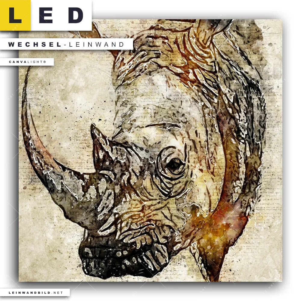 Du bist auf der Suche nach einer Tierwelt Wechsel-Leinwand für Dein LED-Leinwandbild im Quadratischen Format? Begriffe wie Nashorn, Afrika, wild, Safari, Aquarell haben Dich auf der Suche nach Deiner Ersatz-Leinwand für dein LED Wandbild mit wechselbarer Leinwand inspiriert? Farben wie Braun, Beige dürfen auf Deinem neuen Wechselmotiv für Dein XXL Leinwand-LED-Bild nicht fehlen und Leinwände im Grunge, Modern Art, Retro - Vintage Stil für Leuchtbilder passen perfekt zu Deinem Einrichtungsstil?