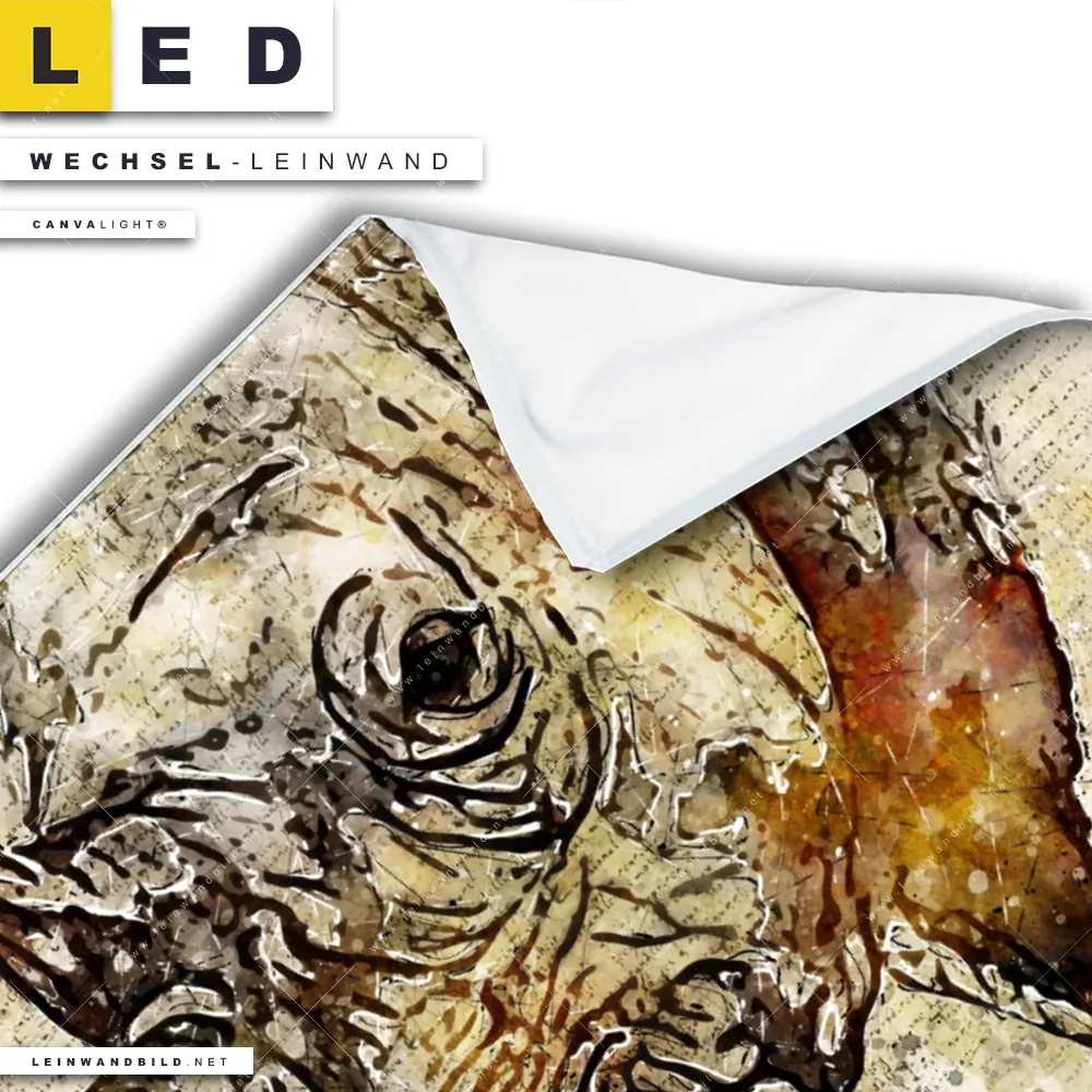 Du bist auf der Suche nach einer Tierwelt Wechsel-Leinwand für Dein LED-Leinwandbild im Querformat? Begriffe wie Nashorn, Afrika, wild, Safari, Aquarell haben Dich auf der Suche nach Deiner Ersatz-Leinwand für dein breites LED Wandbild mit wechselbarer Leinwand inspiriert? Farben wie Braun, Beige dürfen auf Deinem neuen Wechselmotiv für Dein XXL Leinwand-LED-Bild nicht fehlen und Leinwände im Grunge, Modern Art, Retro - Vintage Stil für Leuchtbilder passen perfekt zu Deinem Einrichtungsstil?
