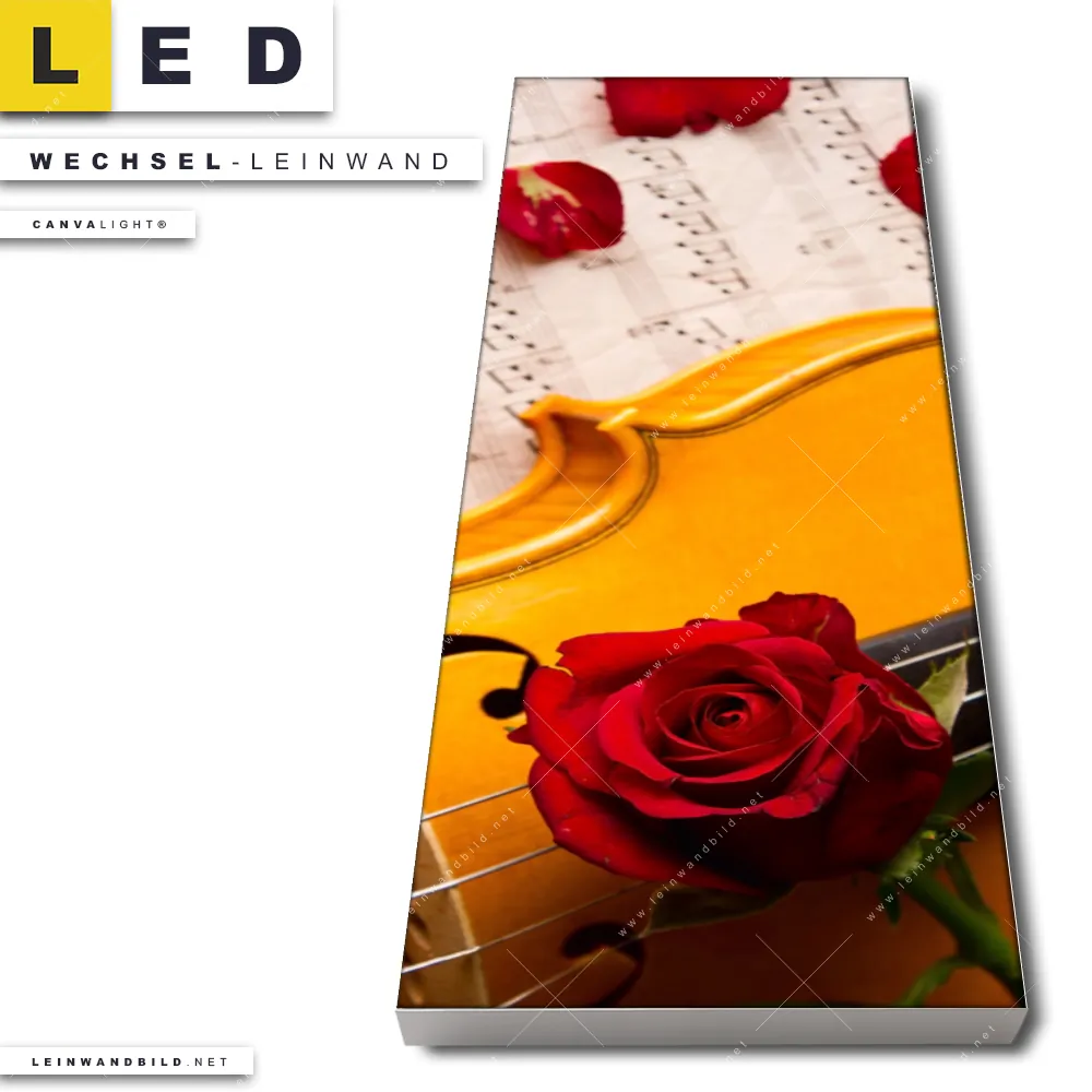 Du bist auf der Suche nach einer Blumen - Botanik Wechsel-Leinwand für Dein LED-Leinwandbild im Schmalen Format? Begriffe wie Musik, Instrument, musikalisch, Blüte, Blume, Rose, Geige, Violine haben Dich auf der Suche nach Deiner Ersatz-Leinwand für dein LED Wandbild im Panorama-Hochformat mit wechselbarer Leinwand inspiriert? Farben wie Rot, Beige, Braun dürfen auf Deinem neuen Wechselmotiv für Dein XXL Leinwand-LED-Bild nicht fehlen und Leinwände im Floral, Natürlich - Realistisch Stil für Leuchtbilder passen perfekt zu Deinem Einrichtungsstil?