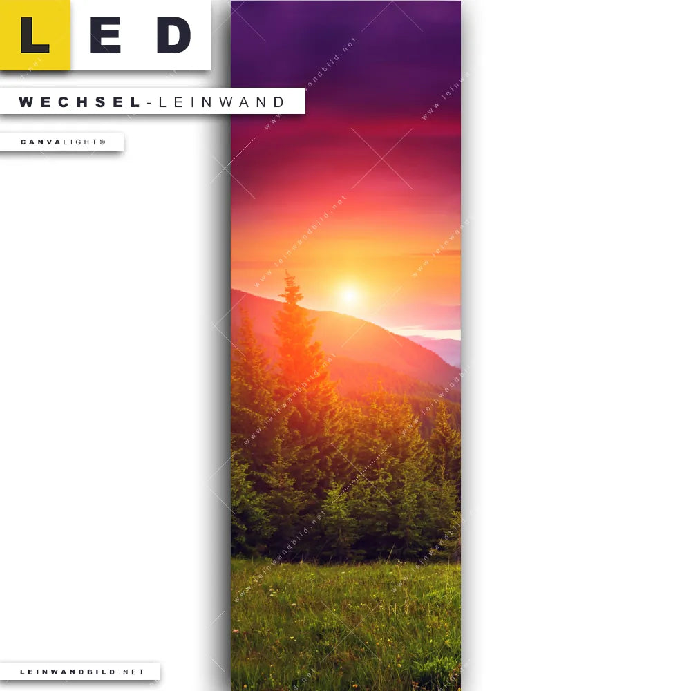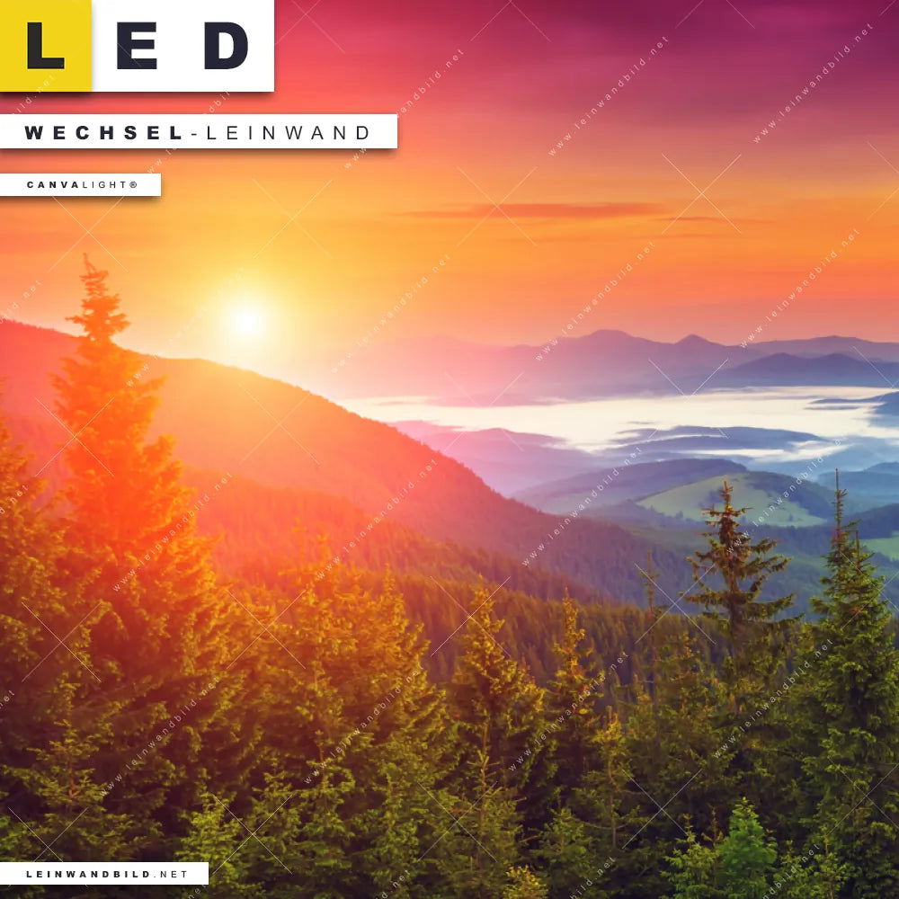 Du bist auf der Suche nach einer Landschaften, Wald - Bäume Wechsel-Leinwand für Dein LED-Leinwandbild im Schmalen Format? Begriffe wie Wald, Landschaft, Bäume, Natur, Sonnenuntergang, Himmel, Tannen, Sonne haben Dich auf der Suche nach Deiner Ersatz-Leinwand für dein LED Wandbild im Panorama-Hochformat mit wechselbarer Leinwand inspiriert? Farben wie Grün, Orange, Lila dürfen auf Deinem neuen Wechselmotiv für Dein XXL Leinwand-LED-Bild nicht fehlen und Leinwände im Natürlich - Realistisch Stil für Leuchtbilder passen perfekt zu Deinem Einrichtungsstil?