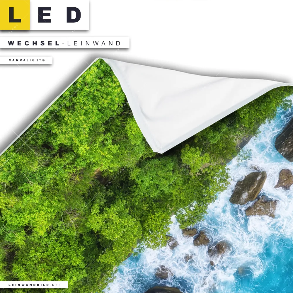 LED Wechsel-Leinwand Canvalight® TEX | Wald & Meer | Quadrat