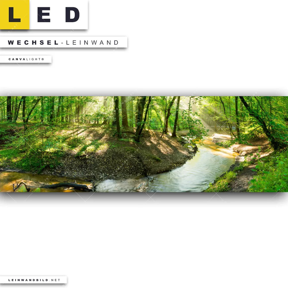 Du bist auf der Suche nach einer Landschaften, Wald - Bäume Wechsel-Leinwand für Dein LED-Leinwandbild im Panorama-Format? Begriffe wie Wald, Landschaft, Baum, Bäume, Natur, Sonne, Sonnenstrahlen, Licht, Fluss haben Dich auf der Suche nach Deiner Ersatz-Leinwand für dein extra breites LED Wandbild mit wechselbarer Leinwand inspiriert? Farben wie Grün, Braun, Hellgrün, Beige dürfen auf Deinem neuen Wechselmotiv für Dein XXL Leinwand-LED-Bild nicht fehlen und Leinwände im Natürlich - Realistisch Stil für Leuchtbilder passen perfekt zu Deinem Einrichtungsstil?