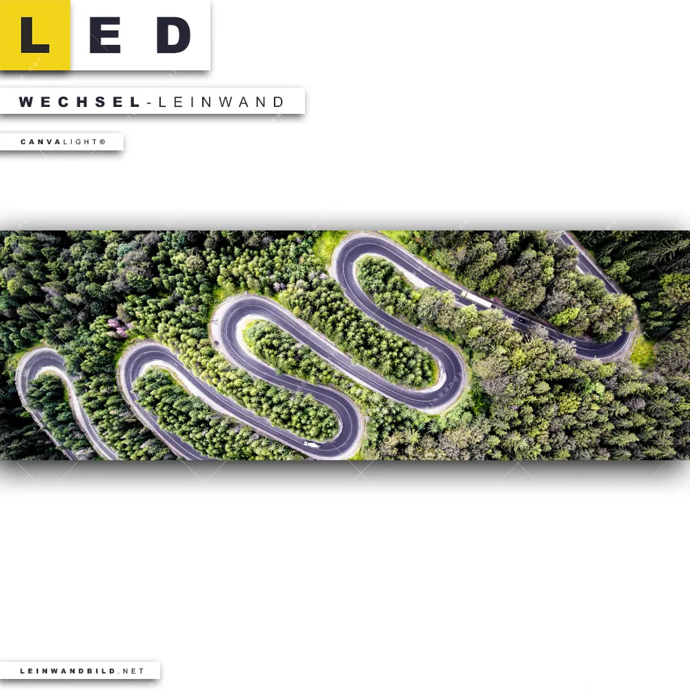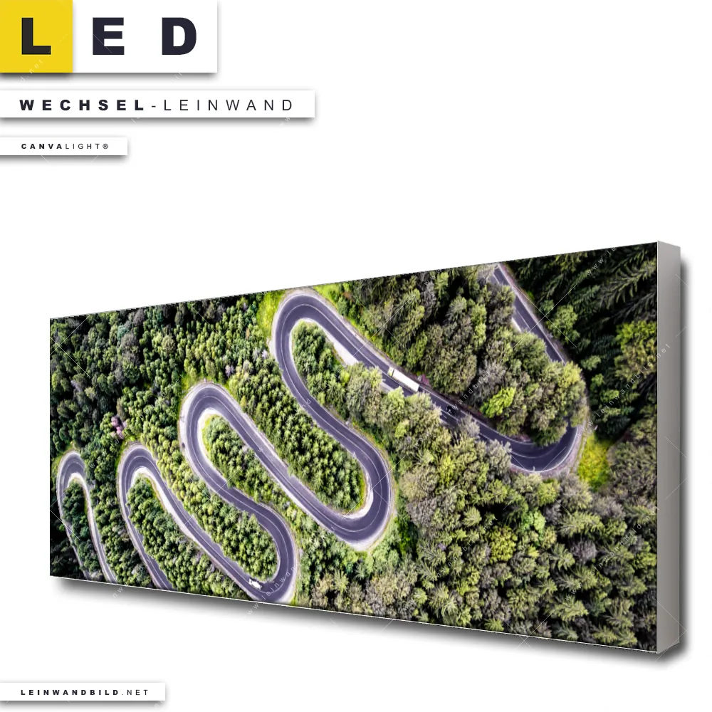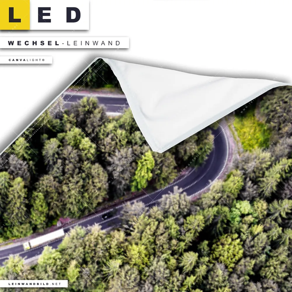 LED Wechsel-Leinwand Canvalight® TEX | Wald & Straße Luftaufnahme | Panorama
