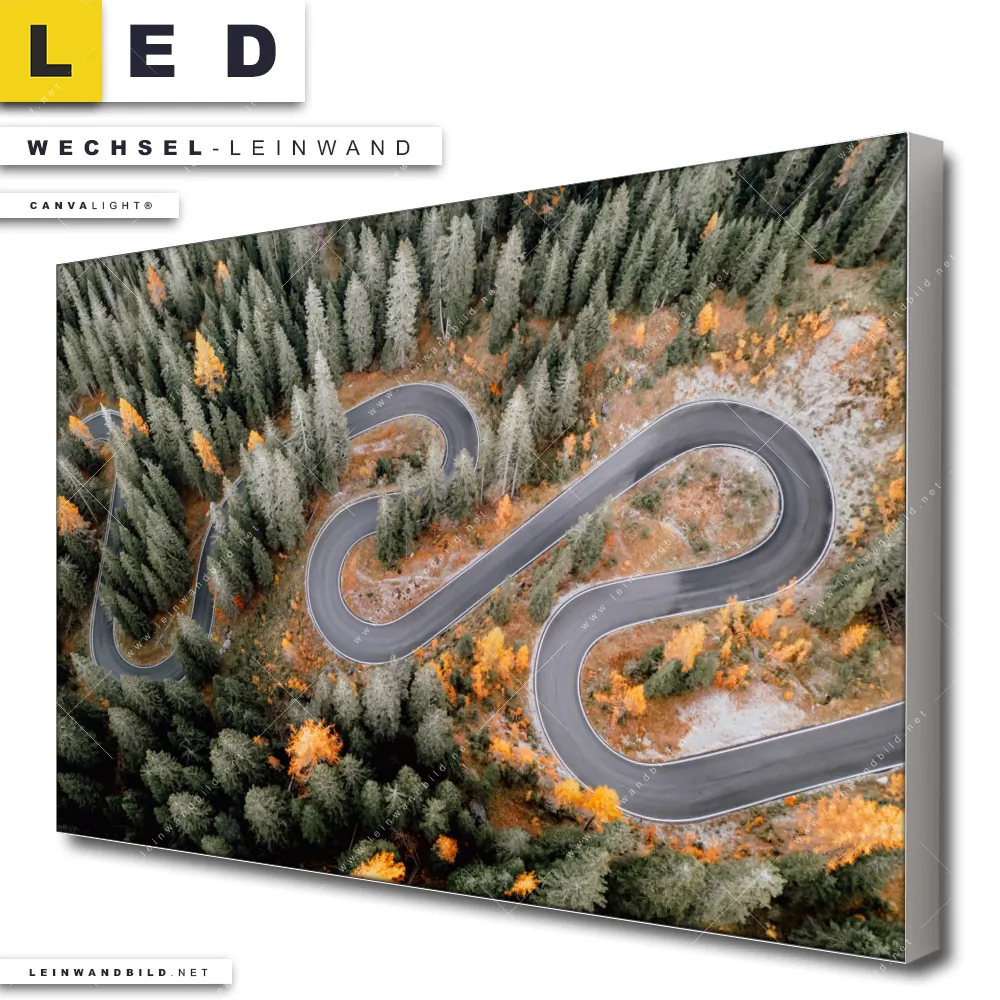 LED Wechsel-Leinwand Canvalight® TEX | Wald & Straße von oben | Querformat