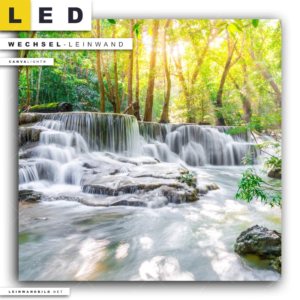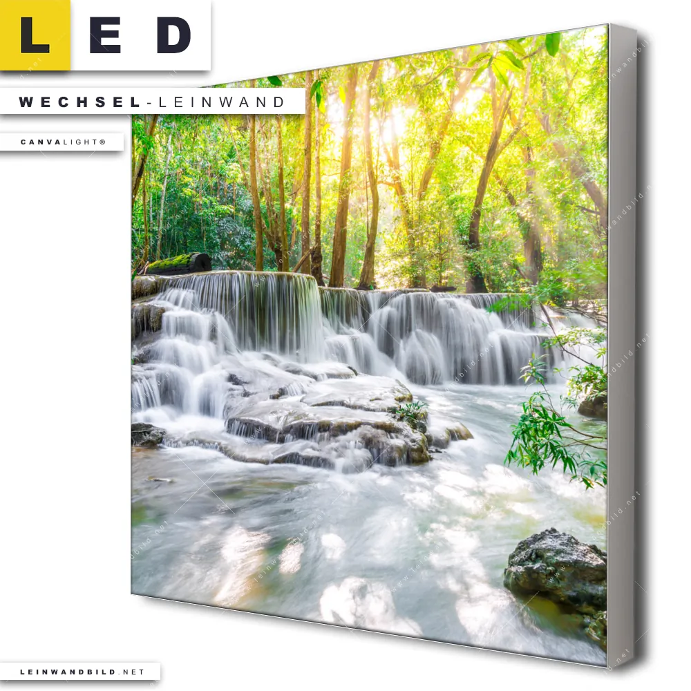 LED Wechsel-Leinwand Canvalight® TEX | Wald & Wasserfall No. 1 | Quadrat