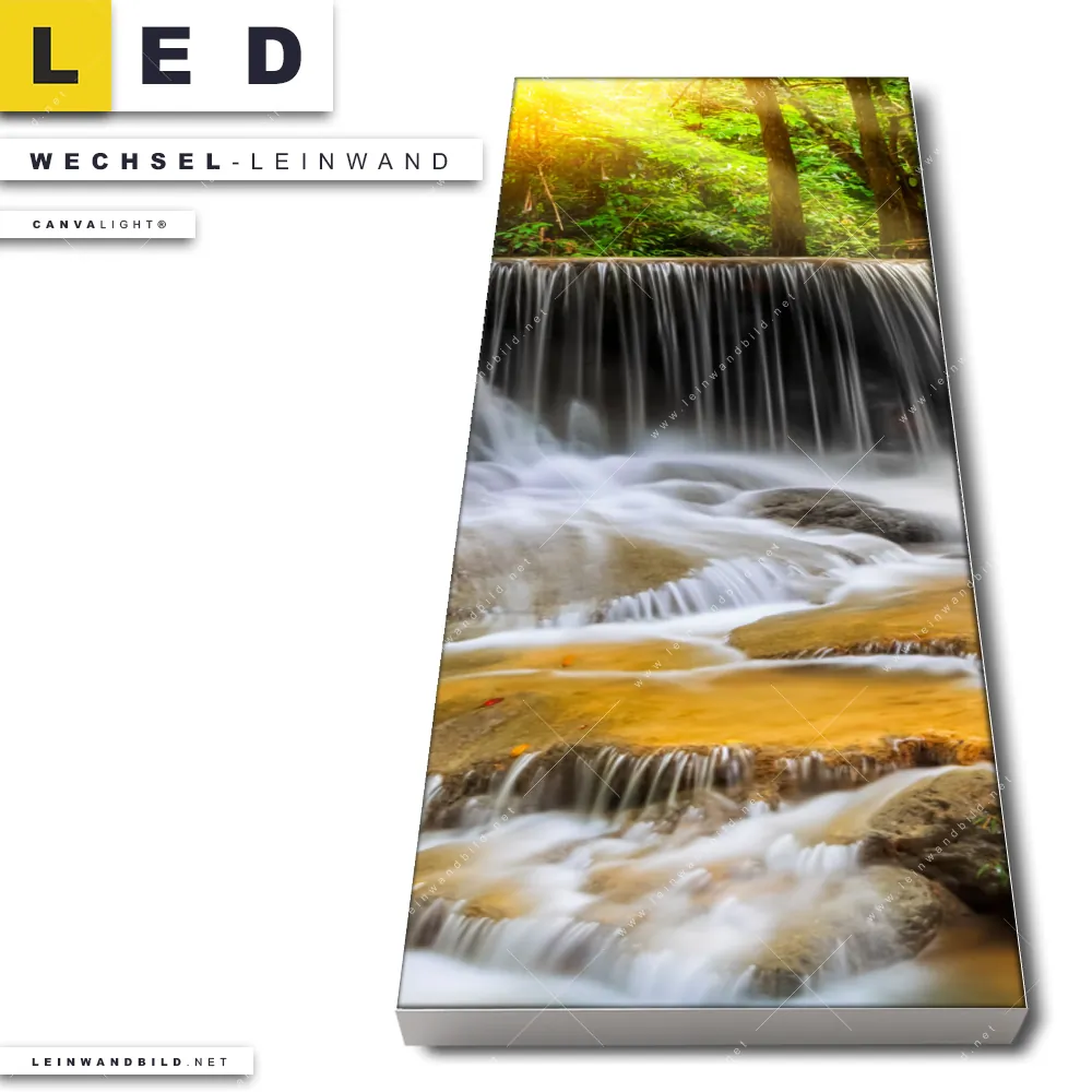 Du konfigurierst Deine individuelle LED Wechsel-Leinwand Canvalight® TEX | Wald & Wasserfall No. 2 | Schmal und wir produzieren sie NEU für Dich. Unsere Landschaften, Wald - Bäume Austausch-Fotoleinwände für Canvalight® LED Bilder sind KEINE Lagerware. Du bist Dir unsicher, welches Motiv oder Format das richtige für dein individuelles LED Wechselmotiv auf Leinwand ist, dann helfen wir dir gerne weiter und beraten dich!