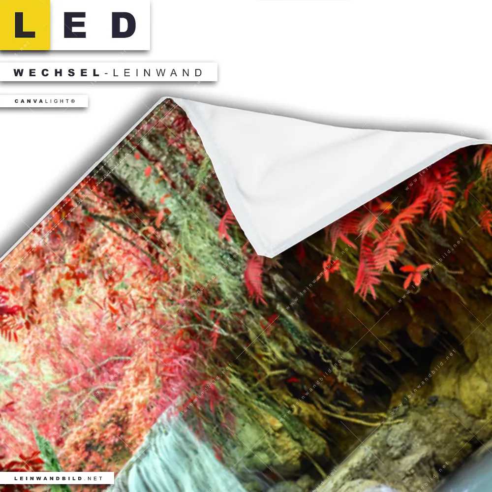 Du konfigurierst Deine individuelle LED Wechsel-Leinwand Canvalight® TEX | Wald & Wasserfall No. 3 | Panorama und wir produzieren sie NEU für Dich. Unsere Landschaften Austausch-Fotoleinwände für Canvalight® LED Bilder sind KEINE Lagerware. Du bist Dir unsicher, welches Motiv oder Format das richtige für dein individuelles LED Wechselmotiv auf Leinwand ist, dann helfen wir dir gerne weiter und beraten dich!