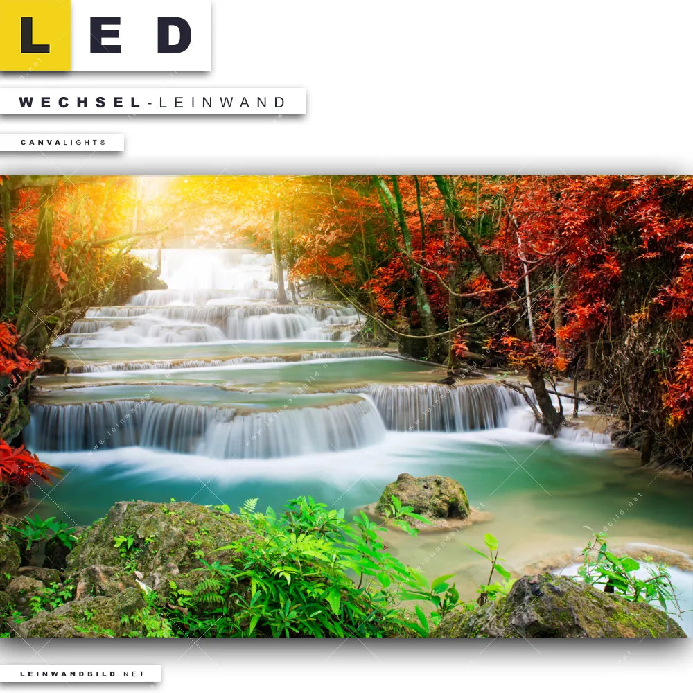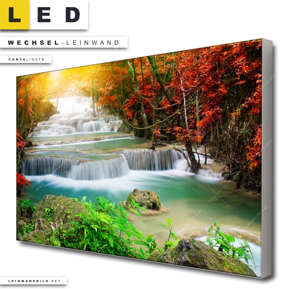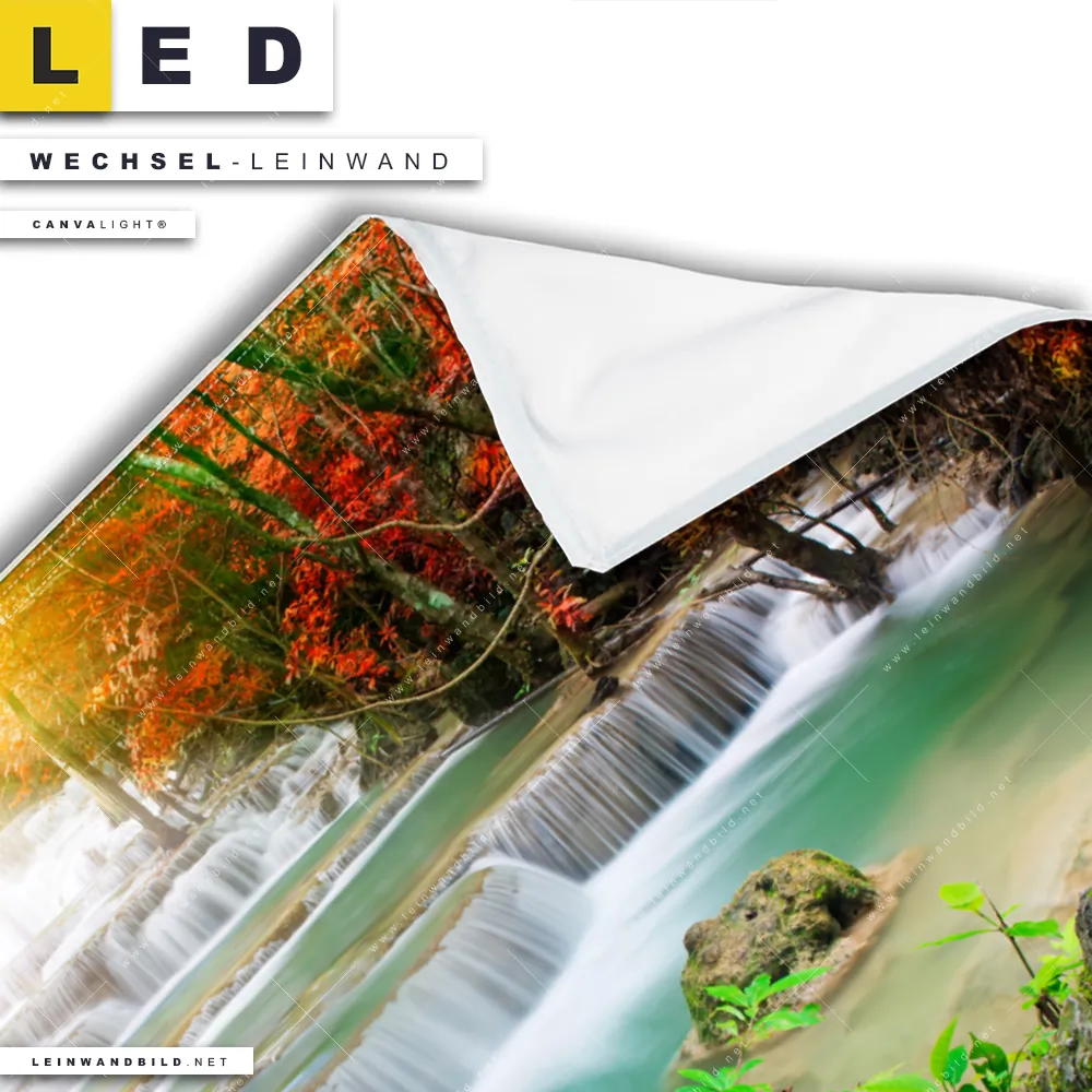 LED Wechsel-Leinwand Canvalight® TEX | Wald & Wasserfall No. 5 | Querformat